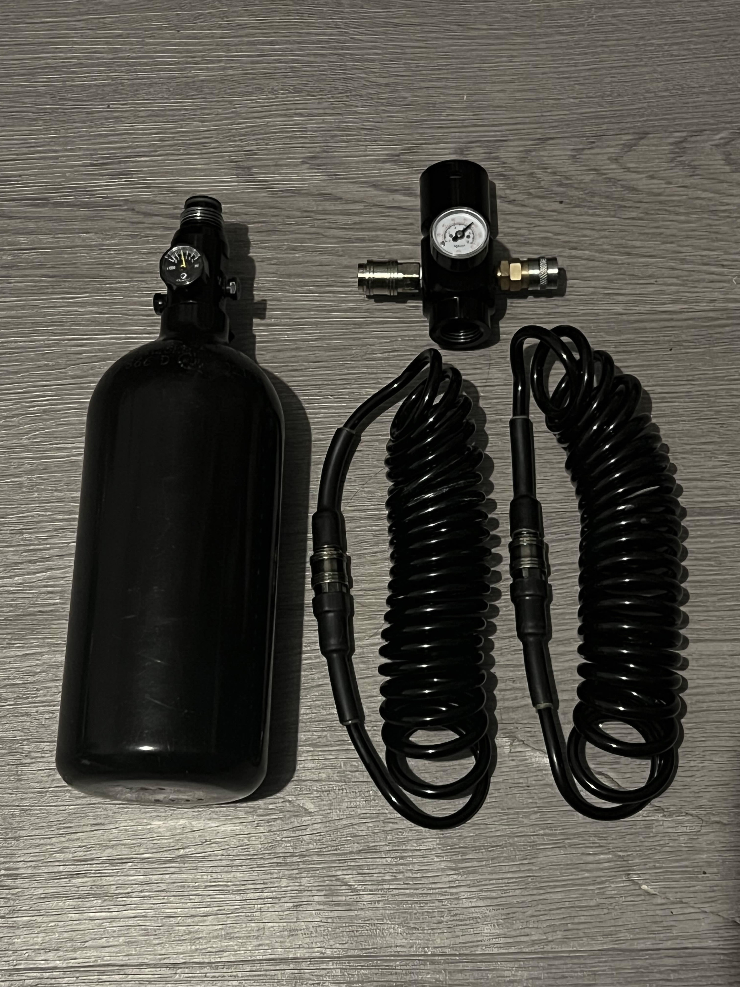 I am selling my complete HPA kit with cylinder, regulator, and two hoses.