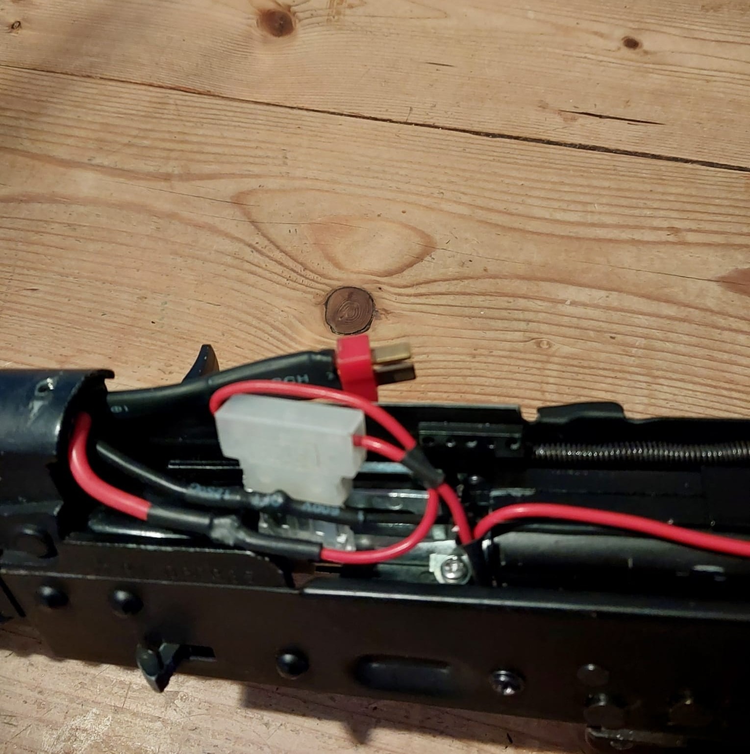 De batterij aansluiting is aangepast naar Deans en de kabel is verlengt zodat de accu in een peq box gebruikt kan worden voor een grotere batterij.