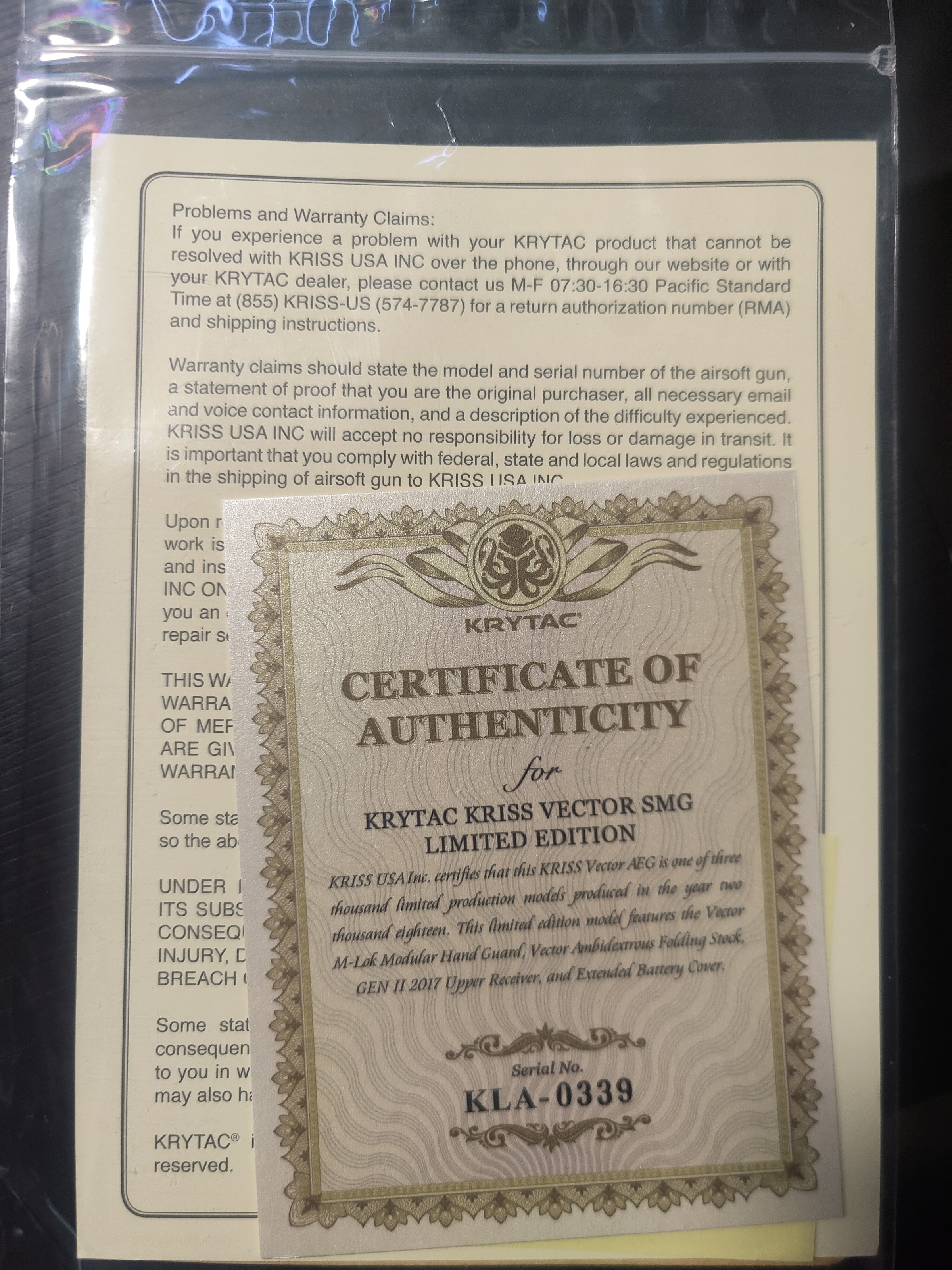 Selling my kyrtac kriss vector which I have never used. Limited edition 1 out of 3000