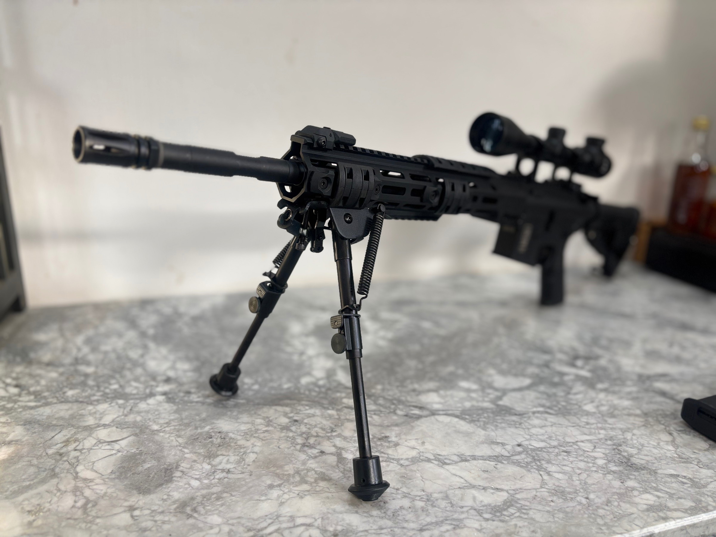 Het gaat hier om een nieuwe replica van Specna Arms. Uit de doos, en direct aangepakt en aangepast voor gebruik als DMR. Alle hierbij gebruikte onderdelen zijn ook nieuw.