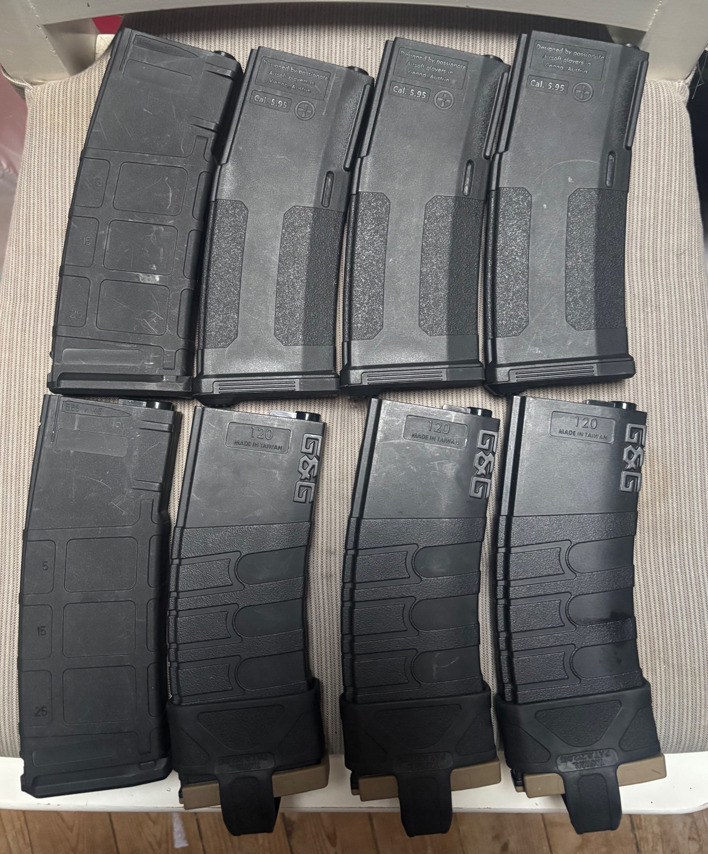 Het zijn 5x Novritsch magazijnen en 3x G&G met magpulls!