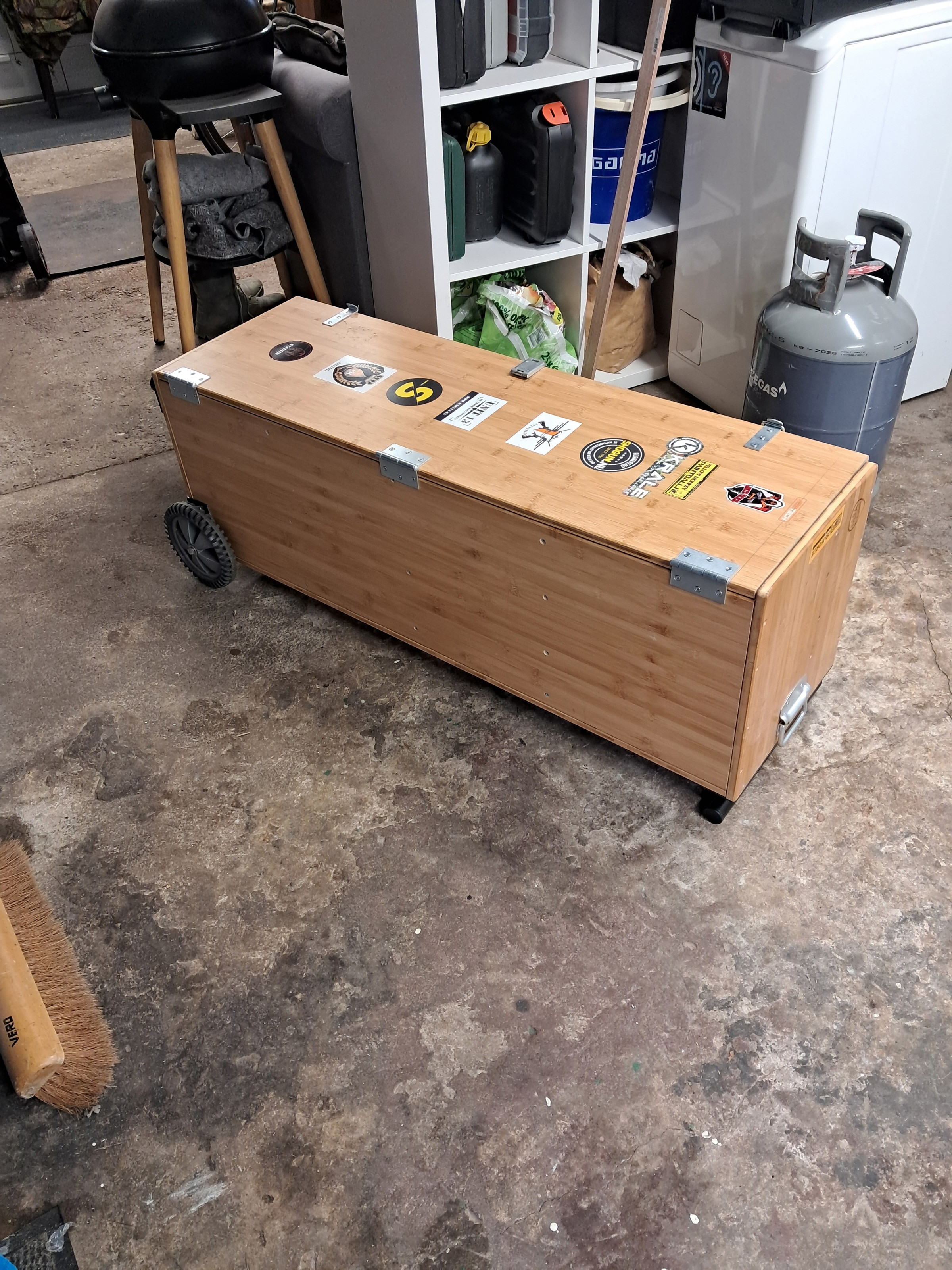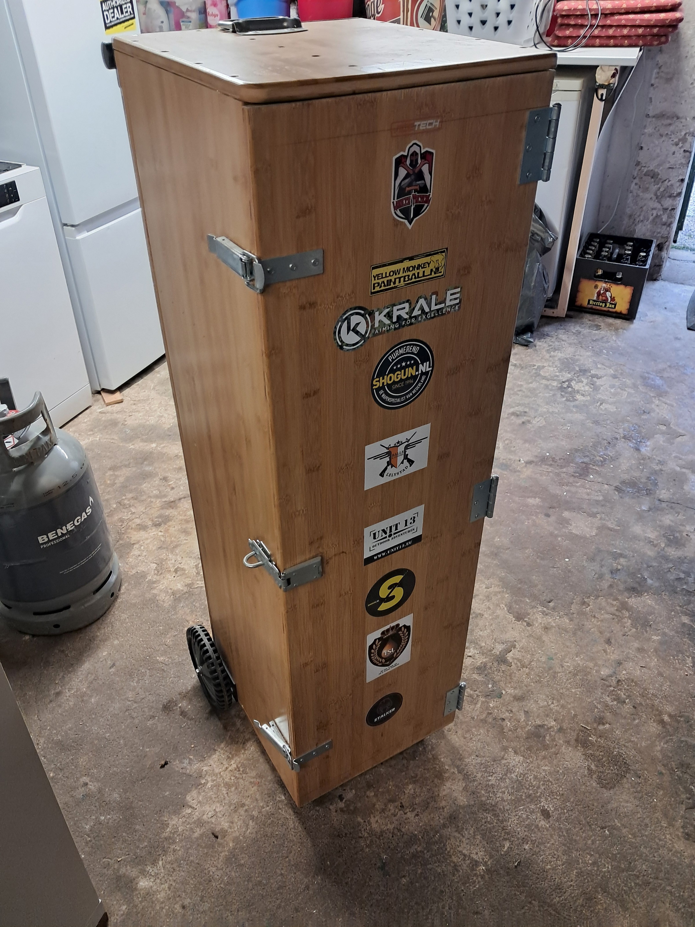 Is verrijdbaar en voor mislims of grote skrim,s ook te gebruiken als zit bank
