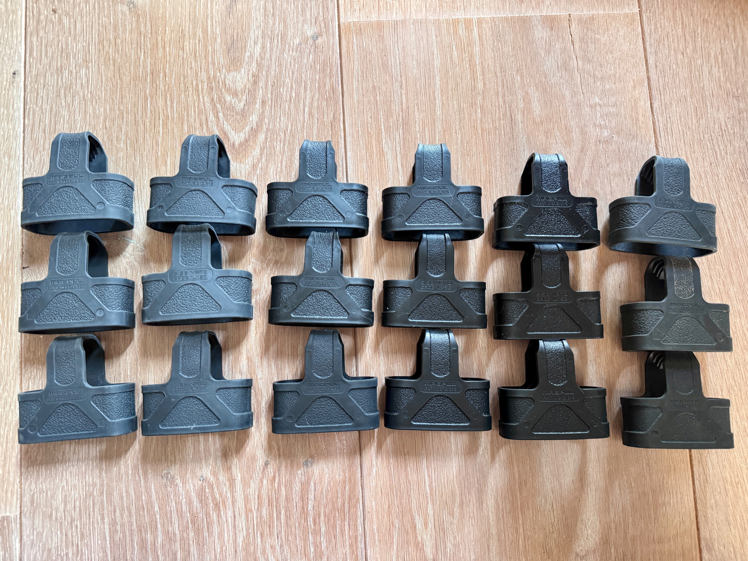 When installed on the base of a 5.56x45 rifle magazine, the original Magpul provides improved speed and controllability during high stress, tactical magazine changes. Durable synthetic rubber loop with recessed rough gripping surface. Quick and easy installation and removal. Patented design based upon the tried-and-true para-cord loops and duct-tape tabs used by special warfare units worldwide.