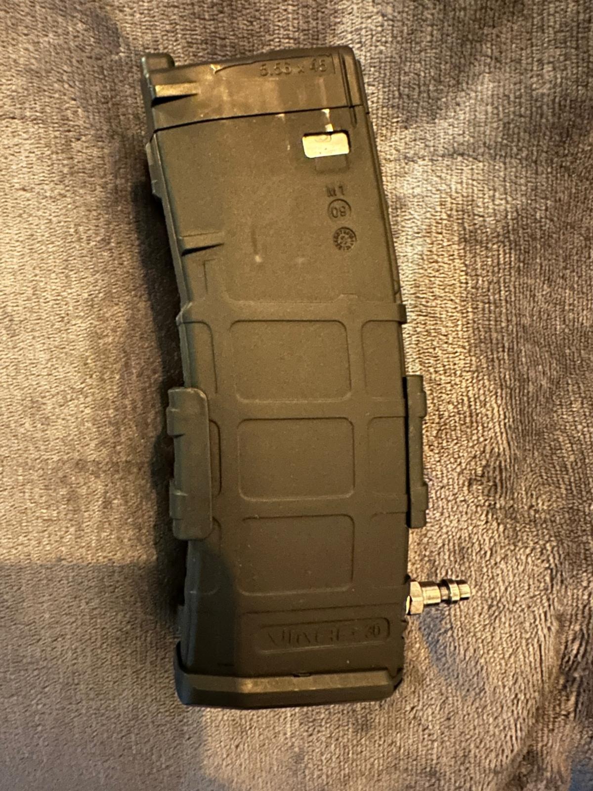 HI CAP magazine for VFC / Umarex HK416 and M4 GBBR made in our workshop. Build with an AEG HI-CAP PMAG with an and a VMAG VFC GBBR magazine. The two magazine are joined by MagLink magazine type coupler. This magazine gives more autonomy while taking advantage of the GBBR recoil.