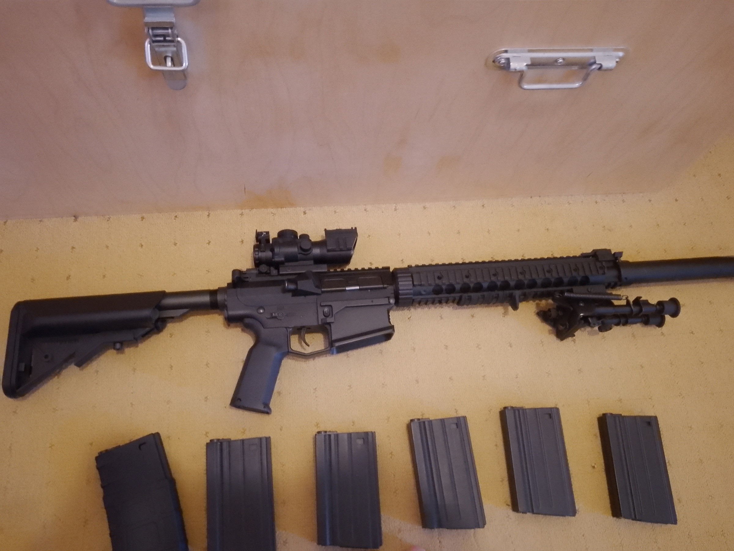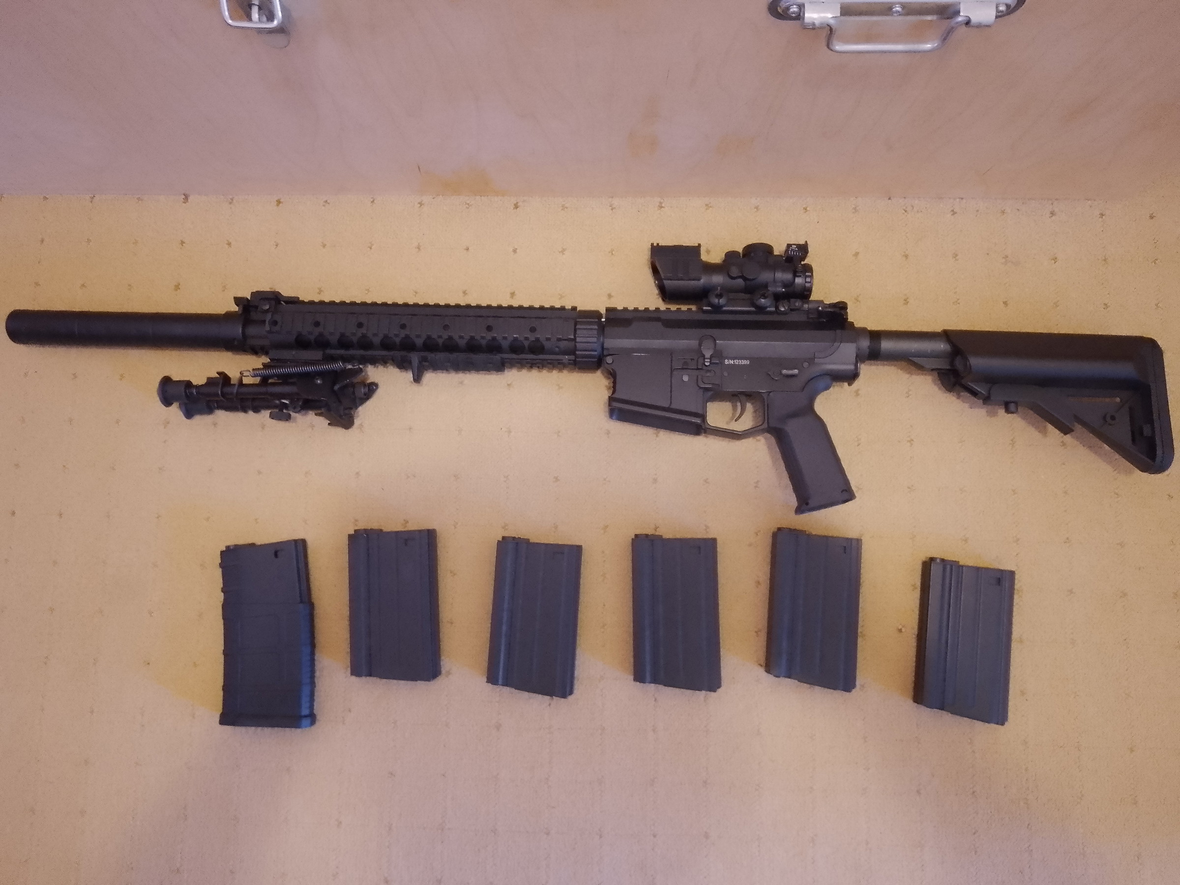 TE KOOP: SR 25 DMR volledig geupgrade met bipod , scope en 6 midcap magazijnen