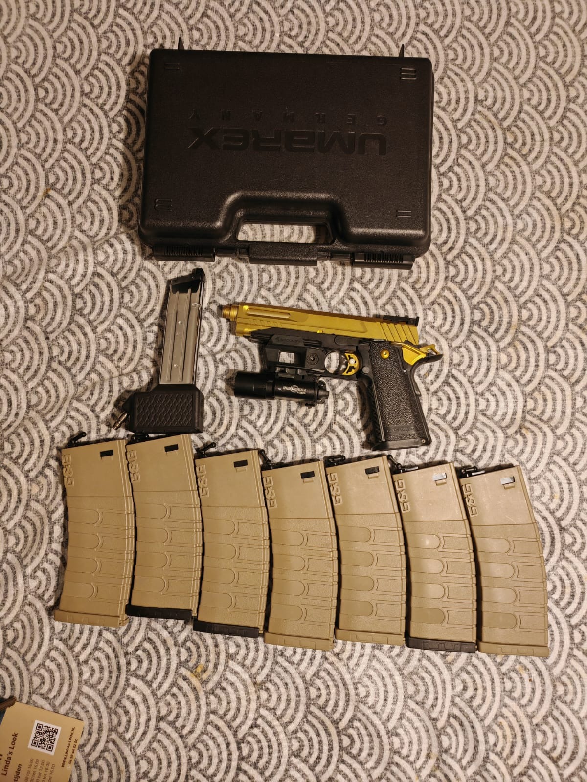 Also I will give you 7 MAgazines for M4 G&G that work with the Hi Capa adapter, and an Umarex Case.