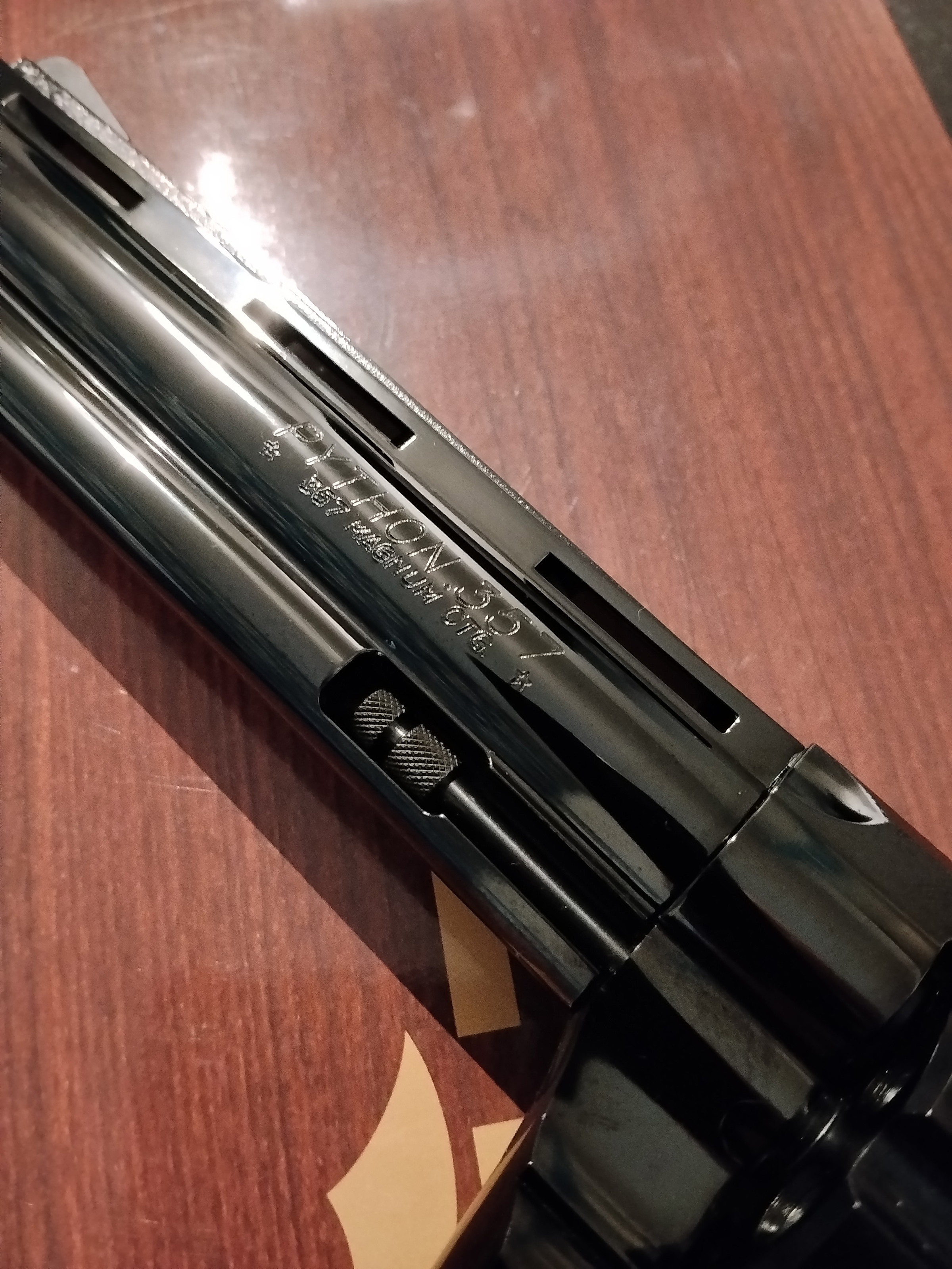 Near new, wooden grips Tanaka Works Colt Python 6" with "Steel Finish".