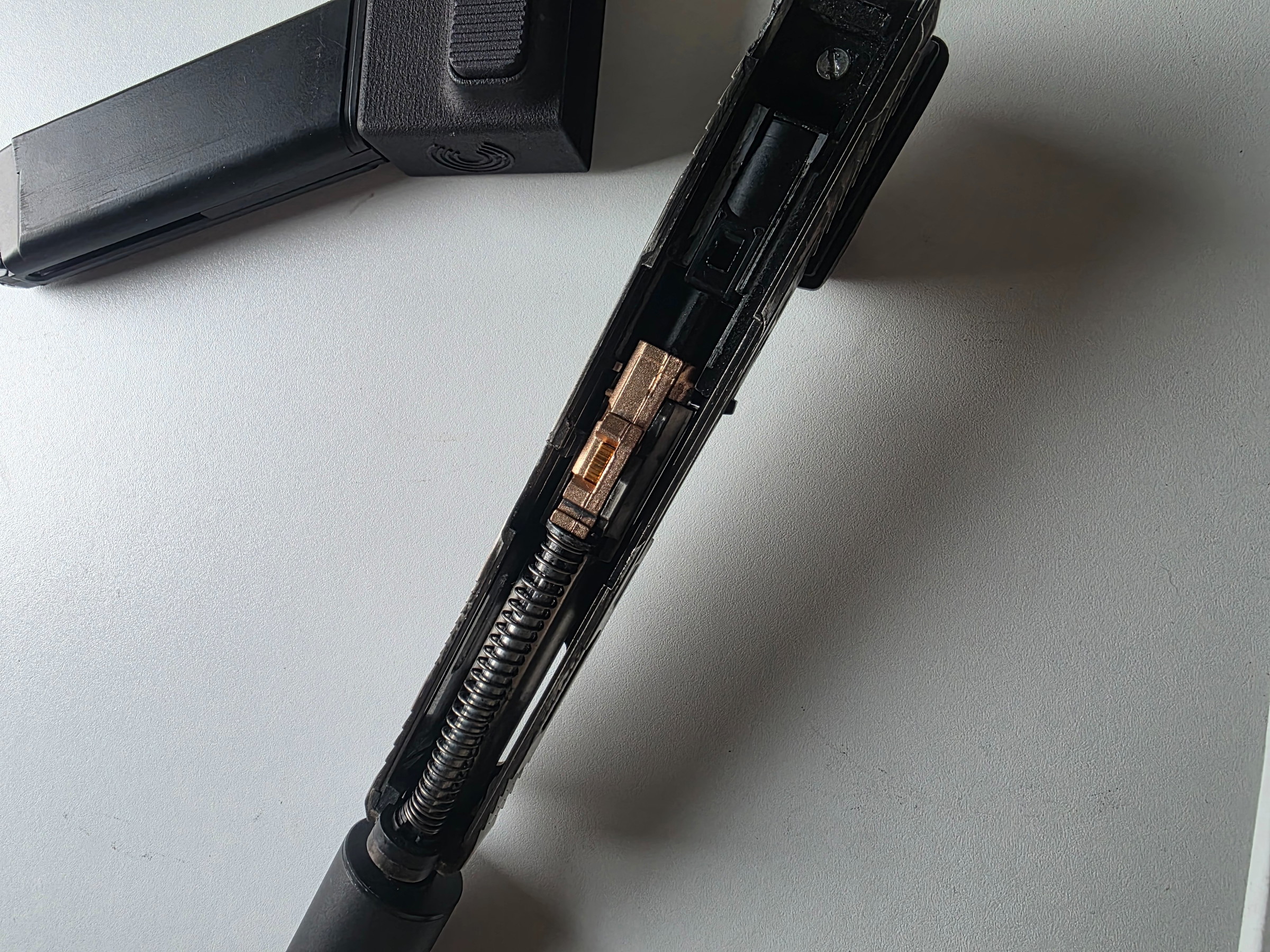 Pistol schiet zeer goed. De slede mist een stukje maar doet het nog goed dus heb je geen last van.