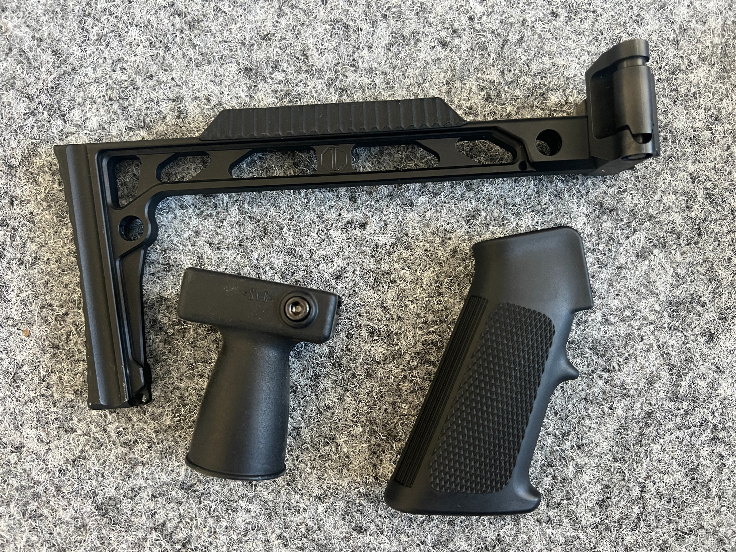 1913 stock, pistol grip and picatinny foregrip