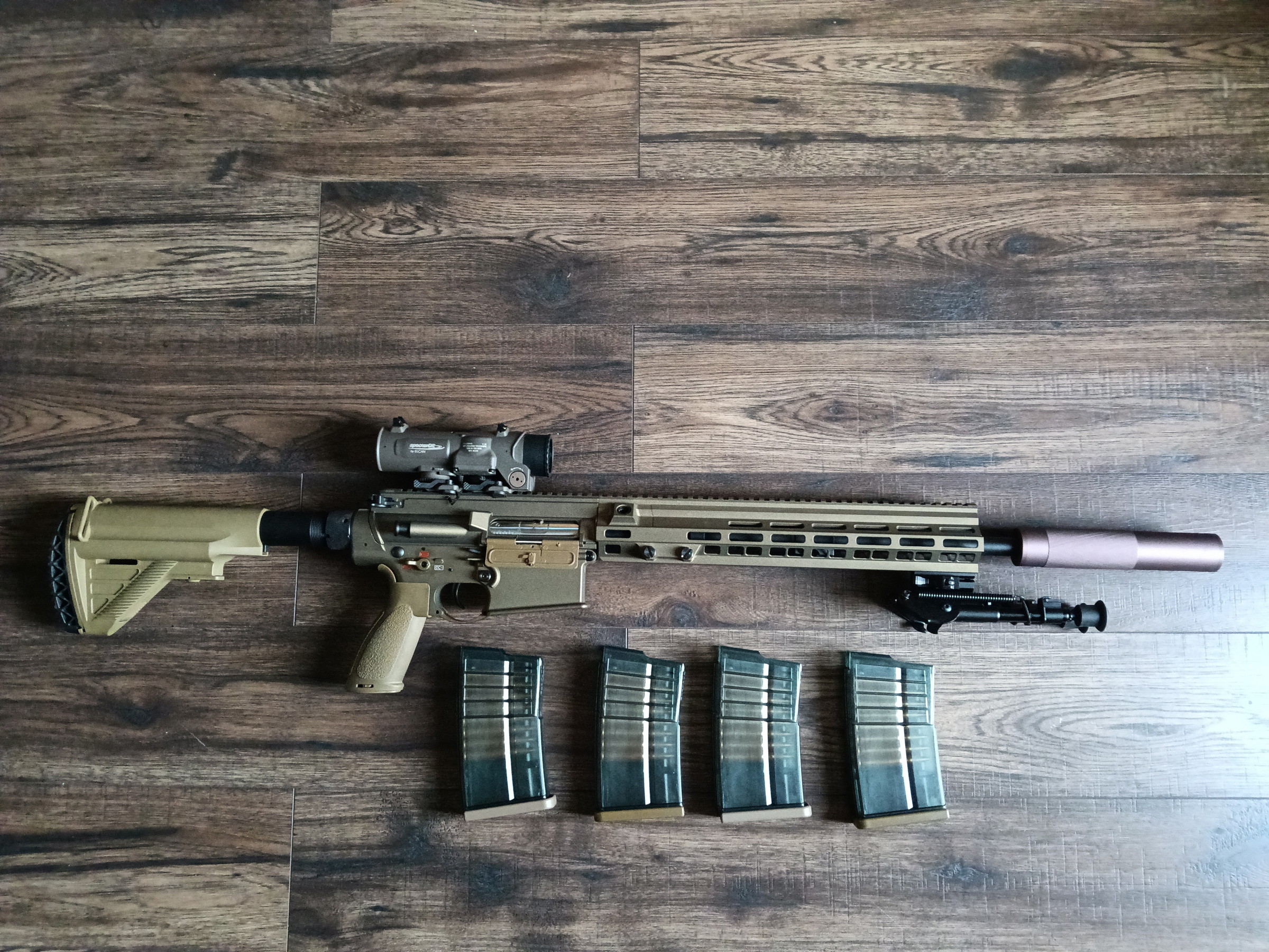 Dit is echt een beest van een replica en komt inclusief 4 midcaps, een elcan spectre scope, (3D-geprinte) scope protector, silencer en bipod.