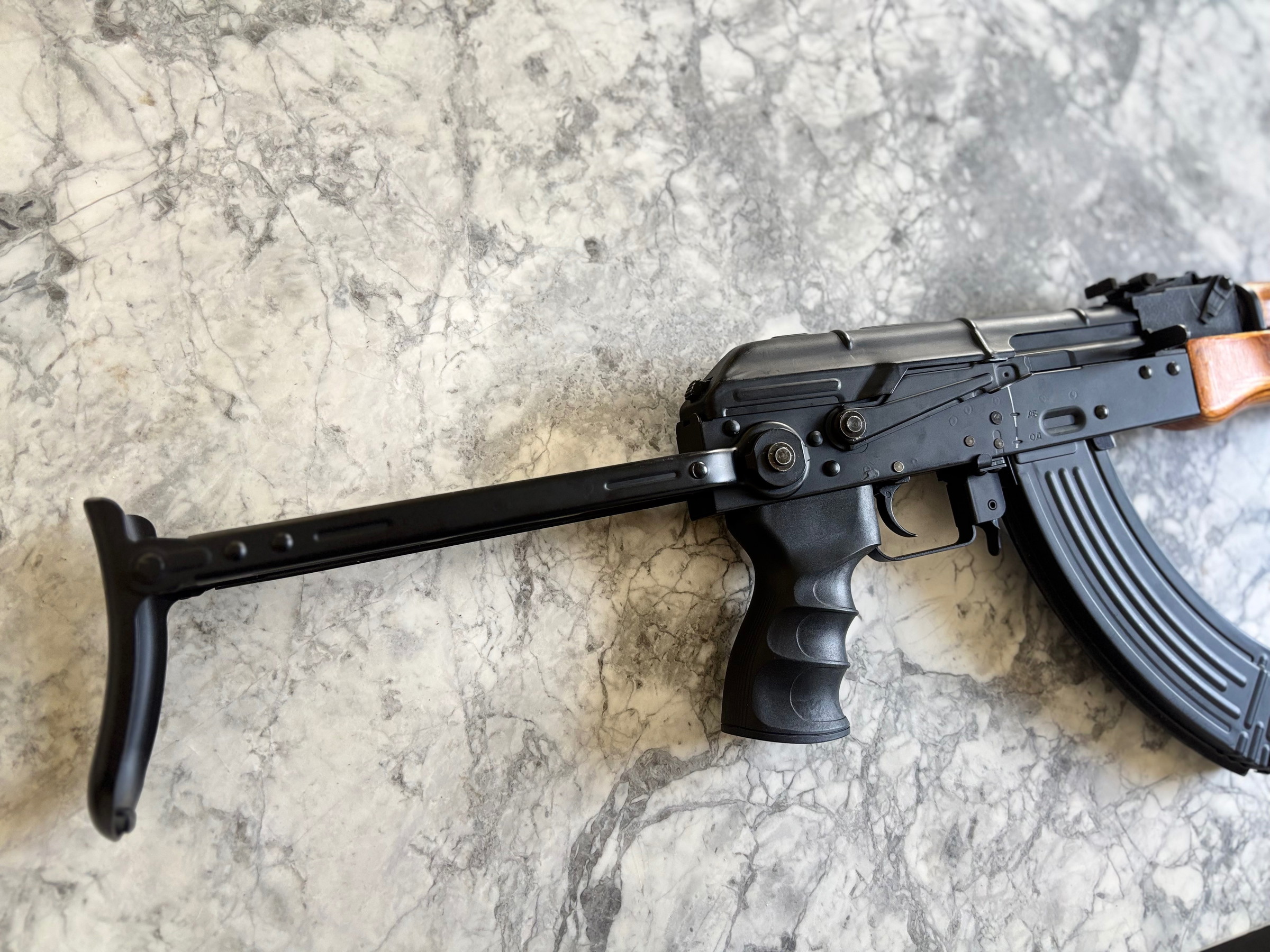 Ondanks her en der wat kleine krasjes, en de typische ak selector kras ziet de replica er nog erg goed uit. De stock klapt nog goed in en klikt keurig vast. Het schouderdeel/scharnierpunt gaat nog mooi stroef en is niet slap.