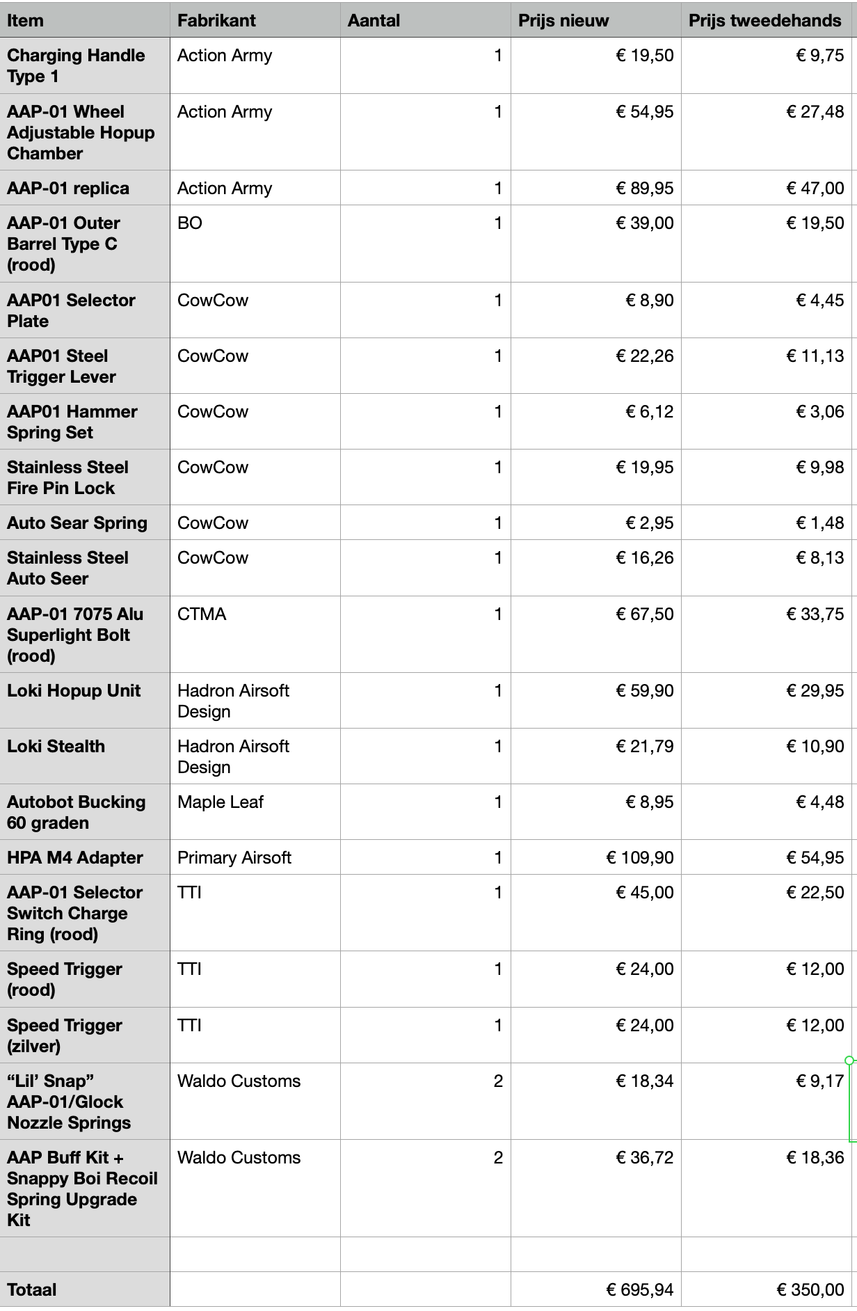 Te koop: complete AAP-01 set voor onderdelen. Bevat onder andere verschillende hopup-units, veren, hammerset-onderdelen, shortstroke-buffers en meer. Alles in 1 koop.