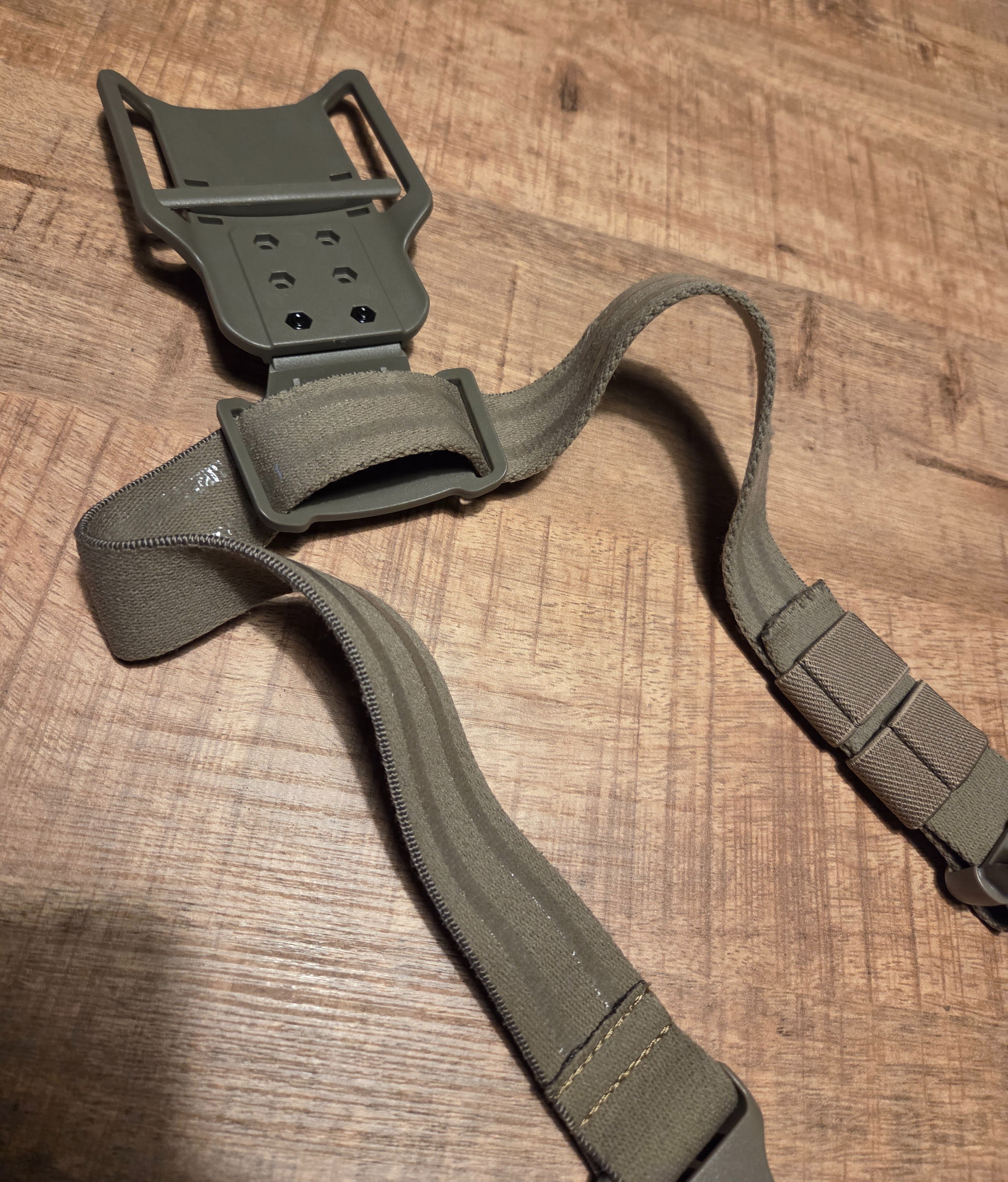 Amomax Low Ride Holster in de kleur Tan. De been strap is verstelbaar. Product word verkocht wegens verkoop van 2de kit, dat deze holster overbodig maakt. De holster is weinig gebruikt en is in goede staat.