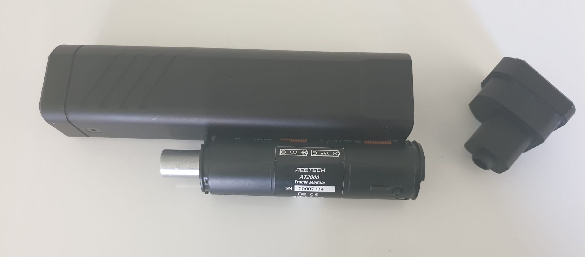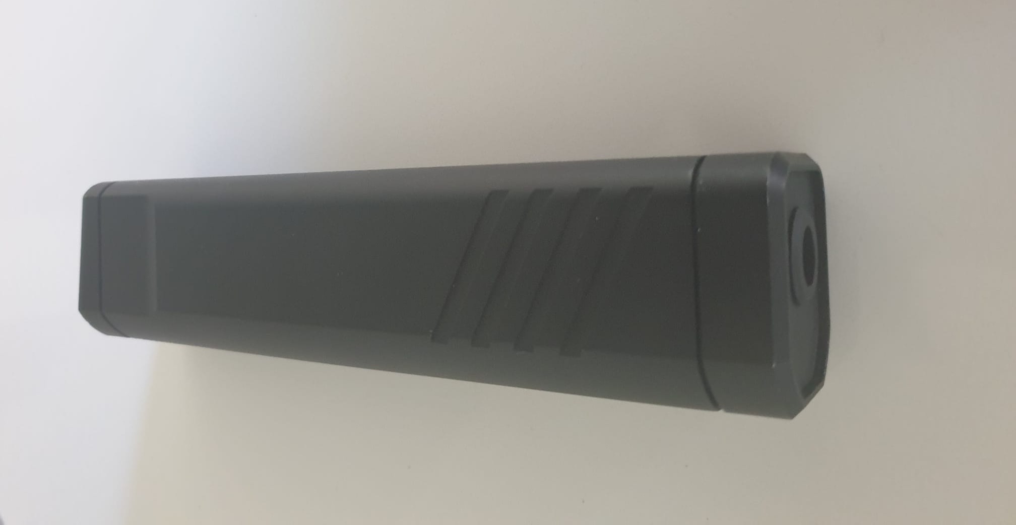 Angry Gun biedt een CNC-gefreesde aluminium KSV-geluiddemper aan, speciaal ontworpen voor uw AEG Kriss Vector airsoftreplica van Krytac. Deze wordt aan het uiteinde van de loop gemonteerd door middel van een meegeleverde schroef. Deze versie is voorzien van een geïntegreerde, krachtige AT2000 LED-plotter van ACETECH.