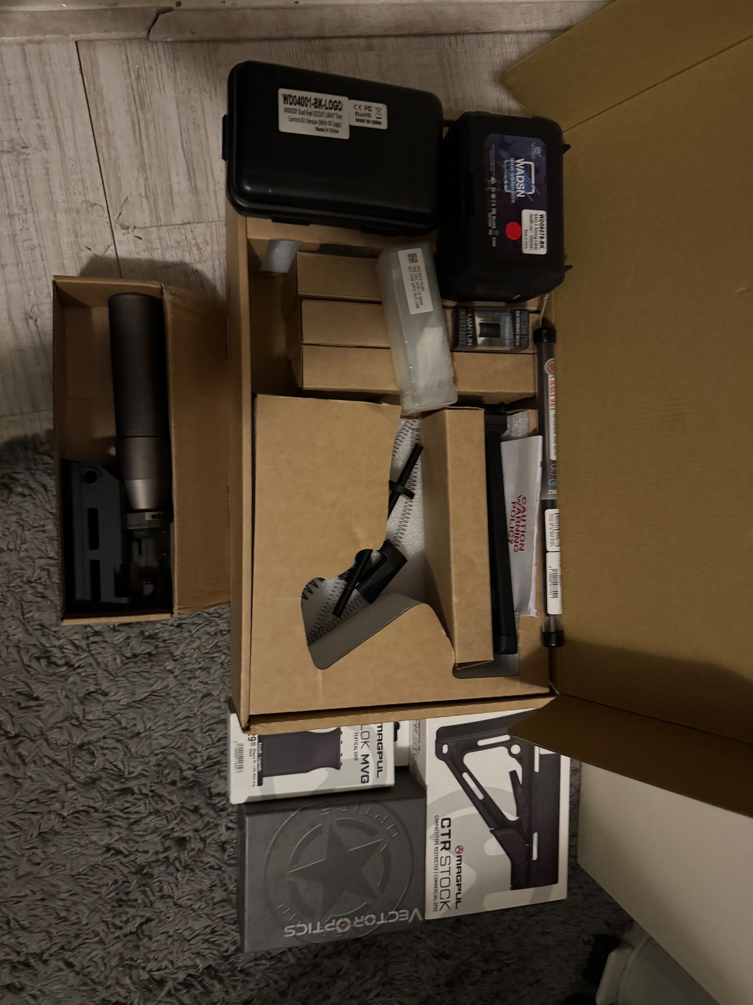 Bij deze gaat mijn APFG RATTLER build in de verkoop, hij is opgebouwd voor CQB gebruik maar die plannen zijn veranderd. Zoals op de foto’s te zien gaat het om een hele nette replica met veel extra’s. Wat zit er bij de replica inbegrepen: 5 magazijnen, vector-optics reddot vizier, MAGPUL CTR STOCK, MAGPUL foregrip, surefire scout light replica, WADSN RAIDX & MAGPUL light switch. Ook is de replica intern niet standaard meer, daar zijn de volgende upgrades aan gedaan: 4UAD hop-up bucking, JWI hop-up base, maple leaf 6.04 crazyjet inner barrel 250MM & airsoftartisan rattler sd handguard kit. Kortom een hele complete set waar alle originele doosjes en onderdelen nog van aanwezig zijn. Heeft u vragen stuur mij dan gerust een bericht.