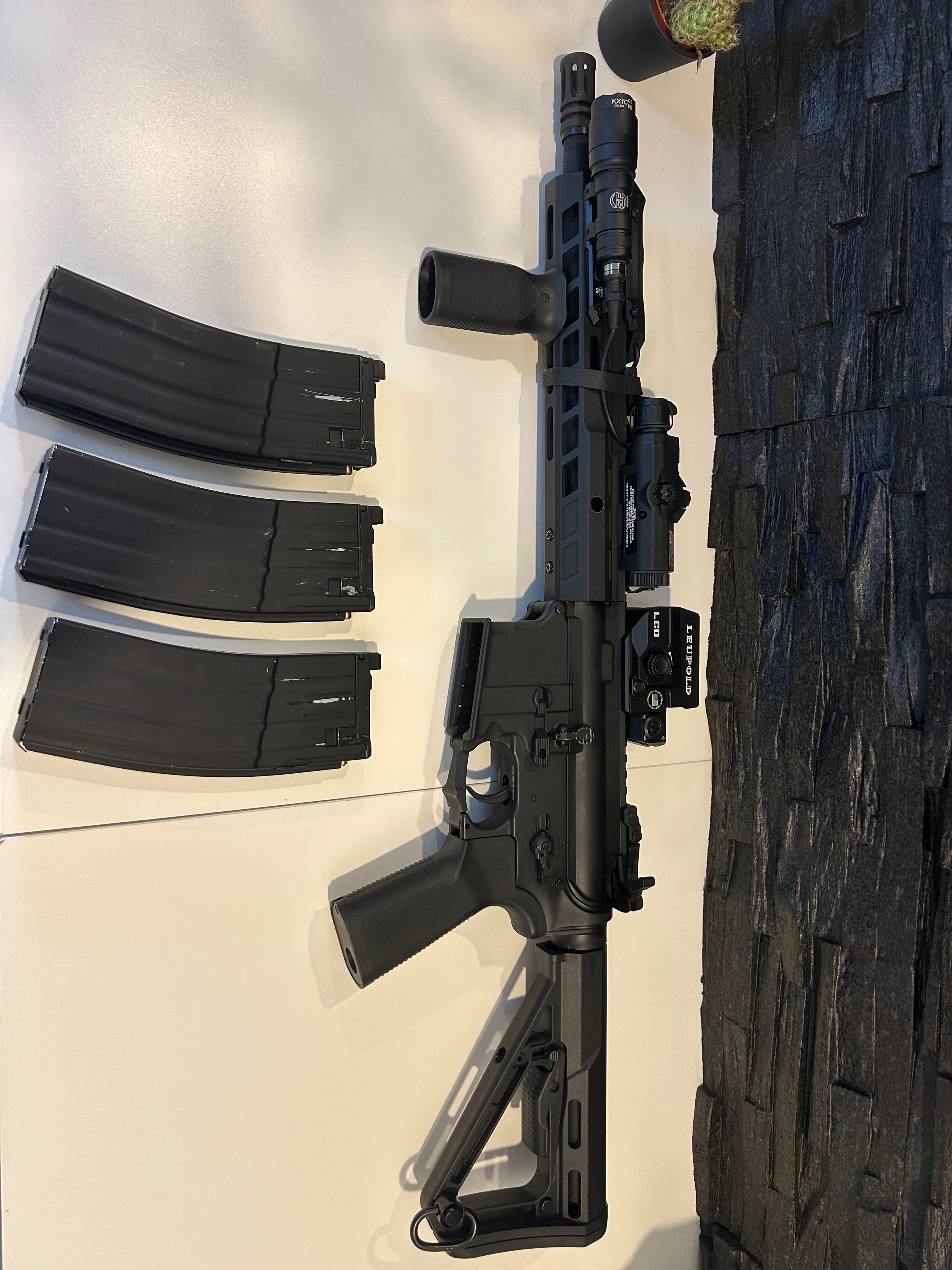 Here is my best Foward Observation Group Build. Sie Runs perfectly in the Winter, last Game was Last friday. She‘s clean and Ready for the next Match. I used 0.36 gramm bis She has 2 Joule and Comes with 3 Magazines . All externals are included. Also the original hopup Tool and feeding tip for the magazines.