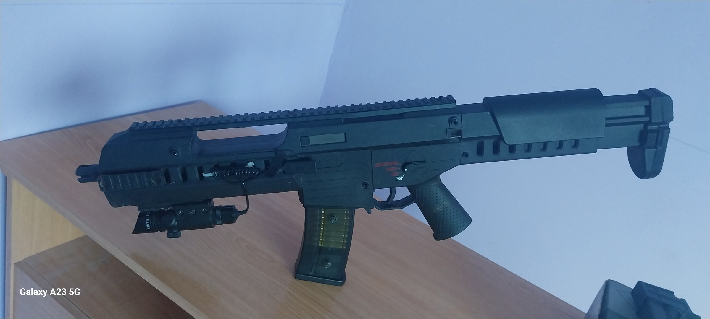 Hola buenas vendo combo replica Ares ASG G14 material abs con blockback electrico y selector de tiro semi, auto y doble tiro ( dispara 2 bolas cada vez muy chulo).