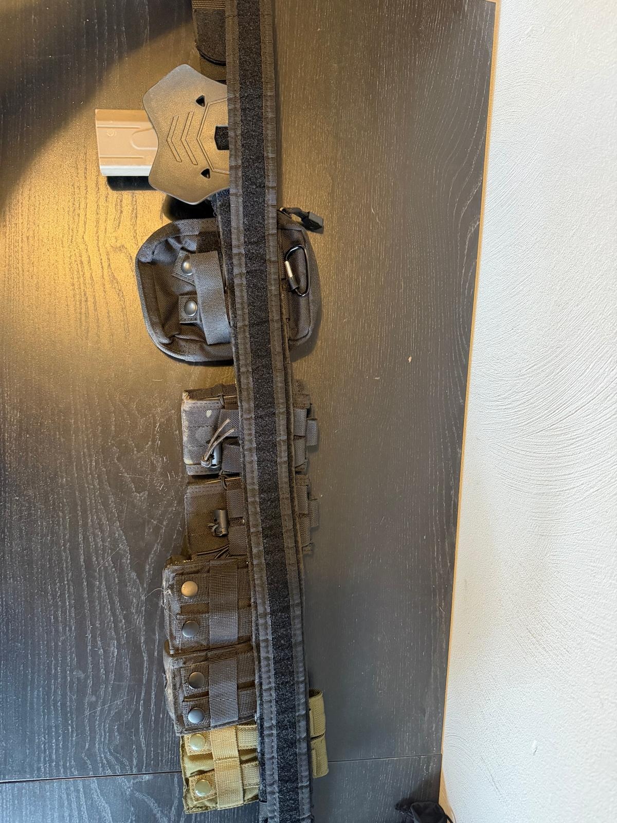 Battle belt zwart met pouches en holster.