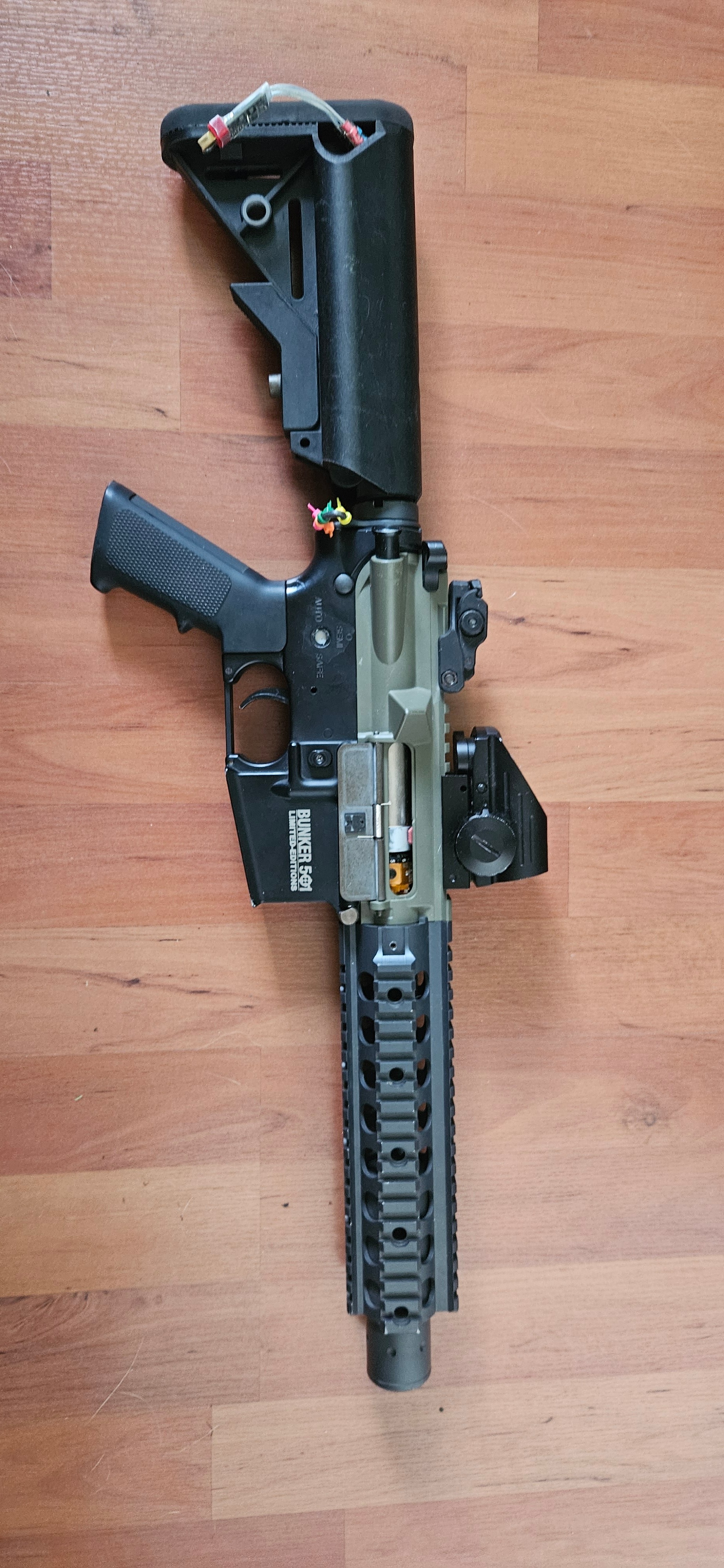 Deze M4 is 1/6 replica's zelf samengesteld en geshimmed door Bunker501. Deze replica is een beest op 11.1v LiPo's en is daarom zeer geschikt voor indoor speelvelden.