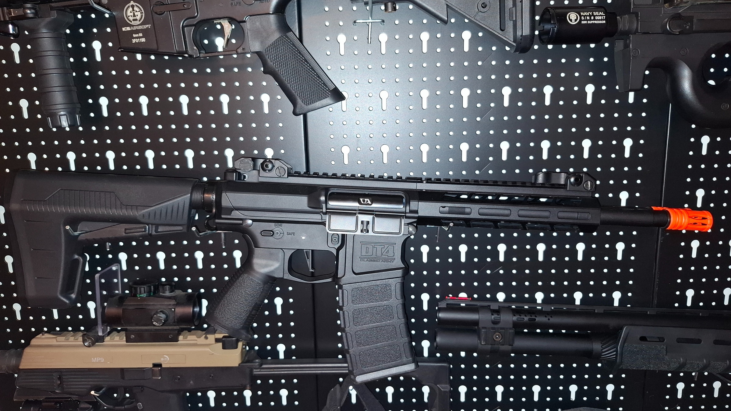 nieuwe classic army dt4 met 11.1v accu en de originele bijhorende hi cap mags. 2uurtjes mee gespeeld en vervolgens gemerkt dat ik niet zo hou van het gewicht aangezien de hele body gemaakt is uit aluminium.