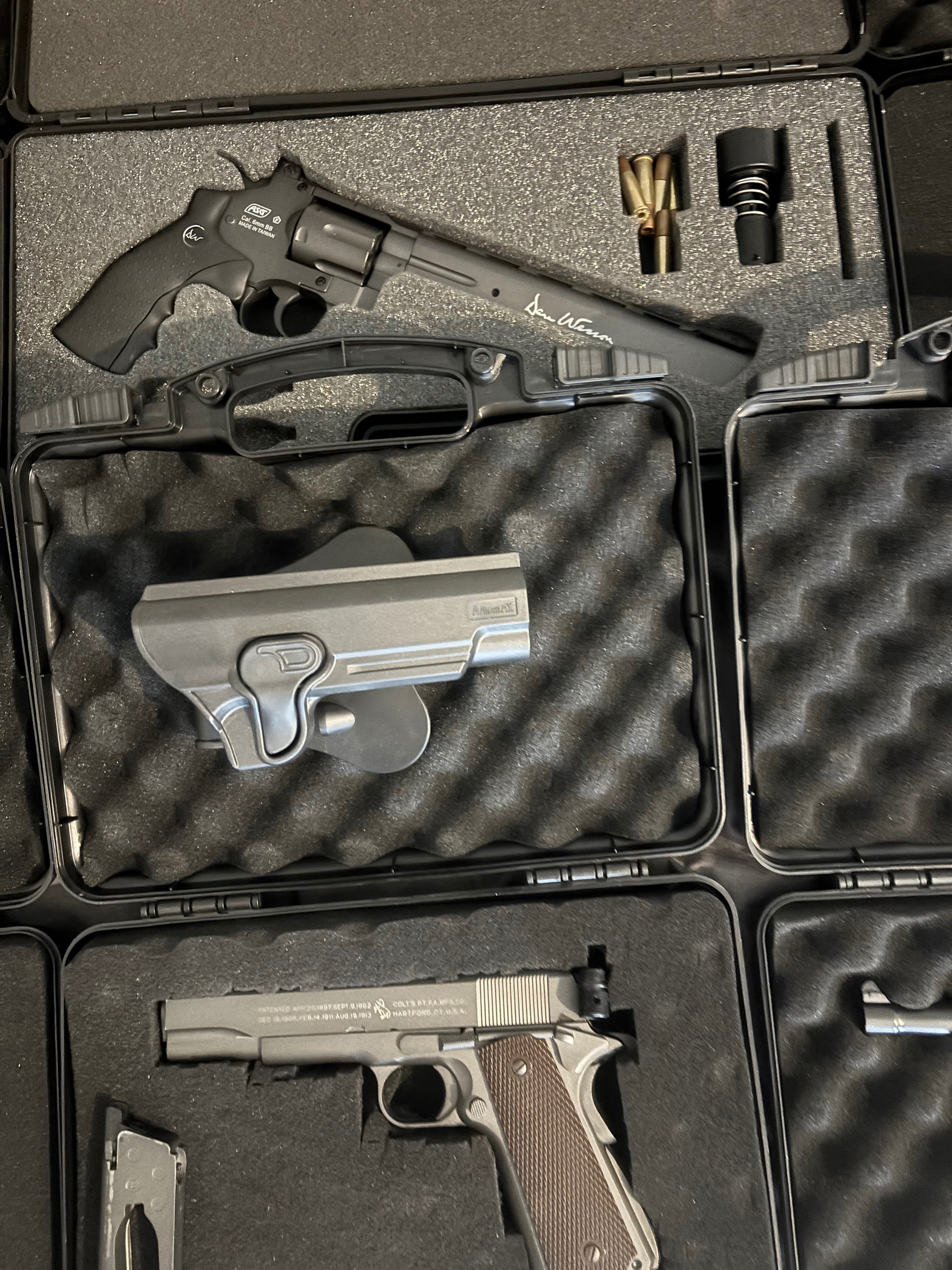 Ik ga stoppen met airsoft dus hierbij bied ik mijn collectie aan Air soft pistolen. Wel alles in één keer en het liefst ophalen. Die door gekrast is nog te koop de Russische officiers pistool
