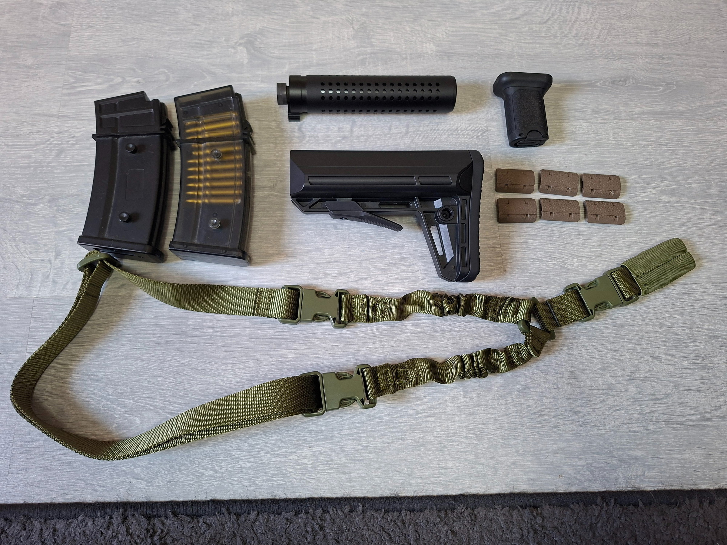 kli beretta m9 ( chroom) .prijs 75€.heb ook nog een aps shark met 1x extra mag+ tactical flashlicht + koffer.deze schiet ook full auto.( prijs 100€) verder heb ik nog wat losse accoires te koop: 2x g36( aeg) mag 10€, silencer 20€,frontgrip 8€, stock ( voor aeg) 20€, riem groen( nieuw) 10€ en tot slot nog 6stuks railcovers( beige) 10€.verzenden mogelijk kosten en risico voor de koper.ps ik verkoop niet aan personen onder 18jaar.