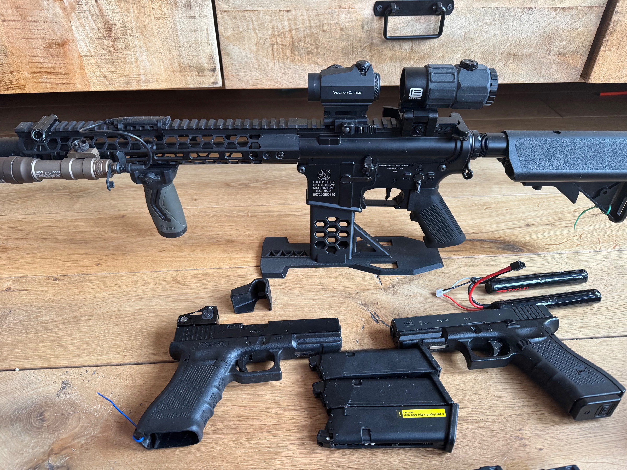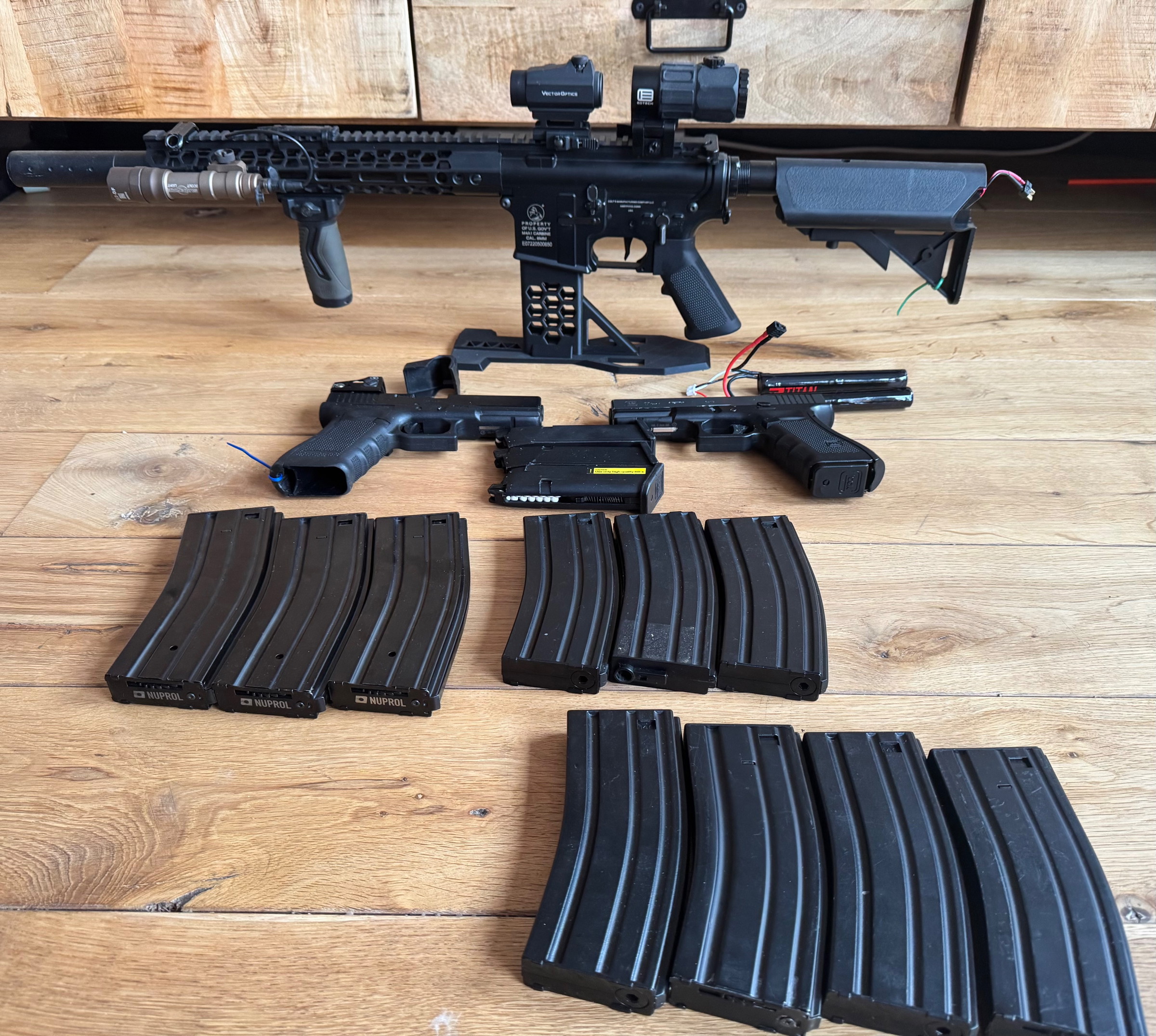 1 - Colt M4A1 met Vector & EOtech scope met 7 kleine (140 magazijnen) en 4 grote (210 magazijnen)  incl nieuwe batterij titan 6000 mah 7.4v