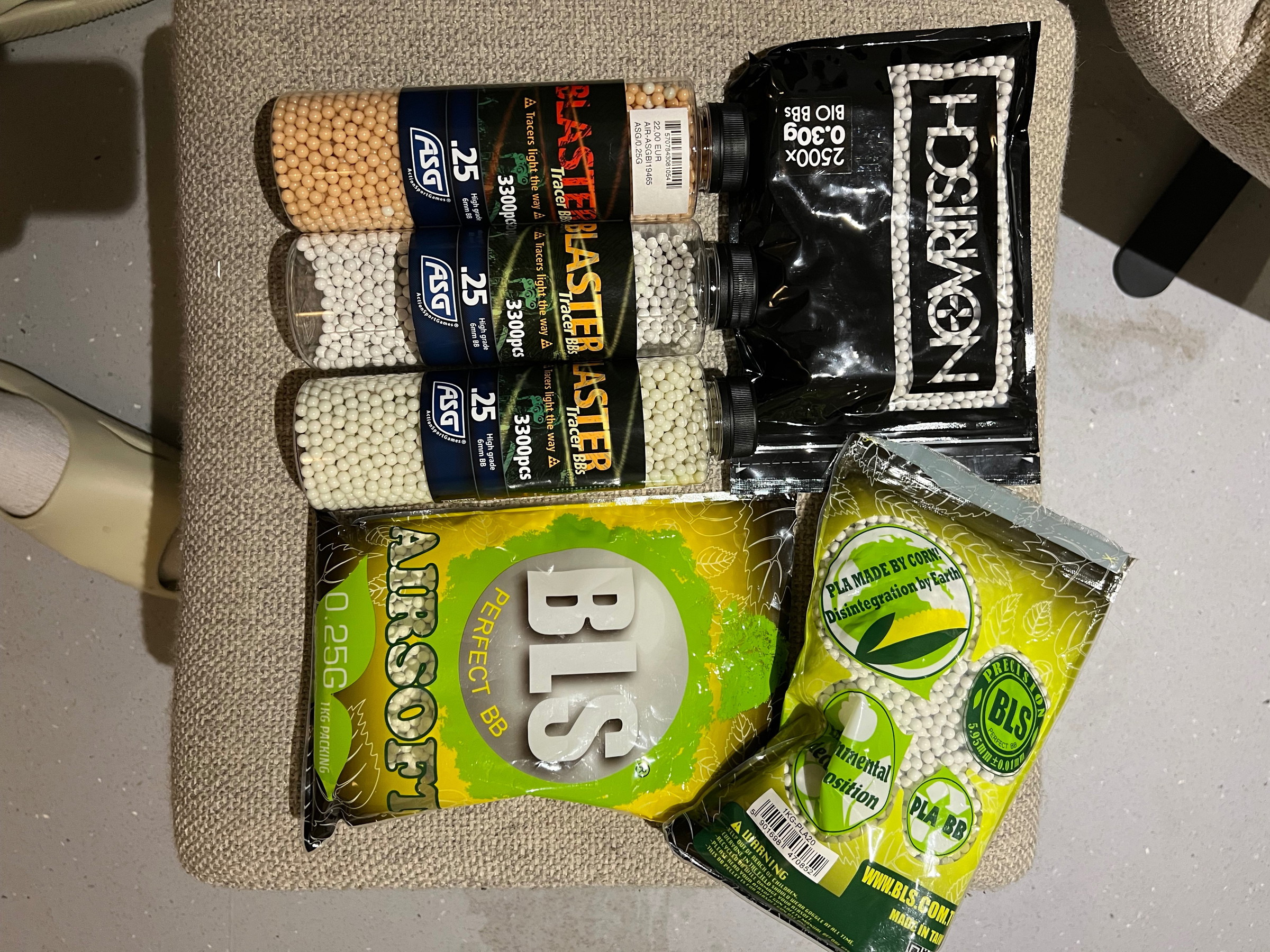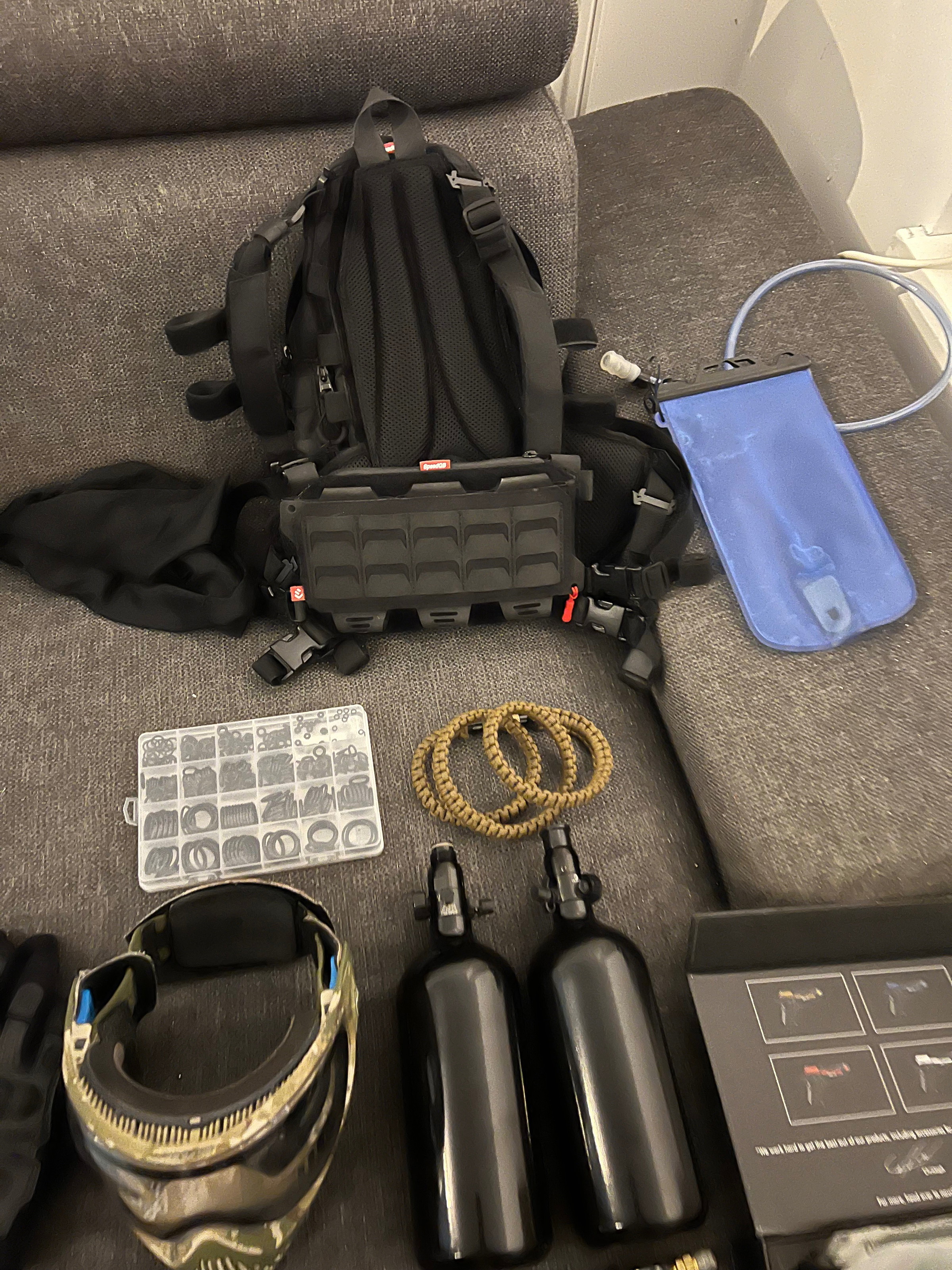 • Ik heb ook nog extra spullen liggen, zoals BB’s, handschoenen, HPA-slangen, extra regulators en flessen — vraag gerust bij interesse.