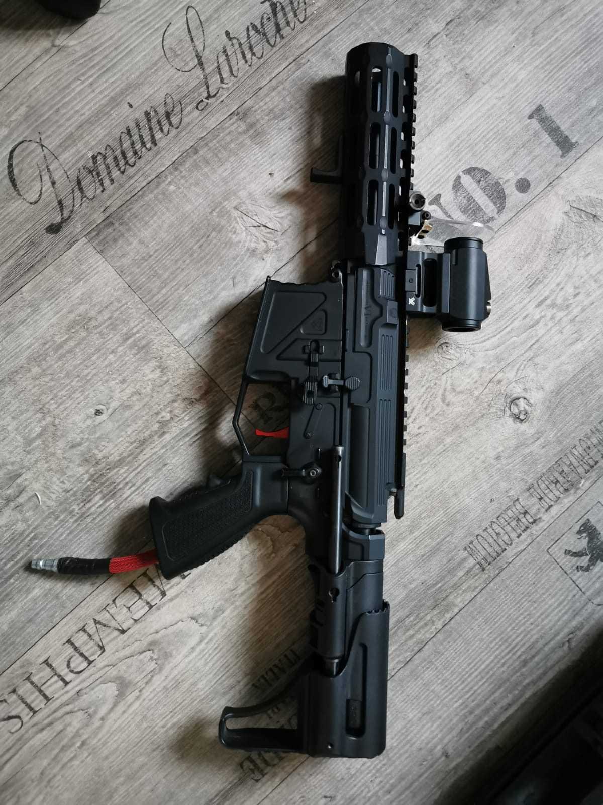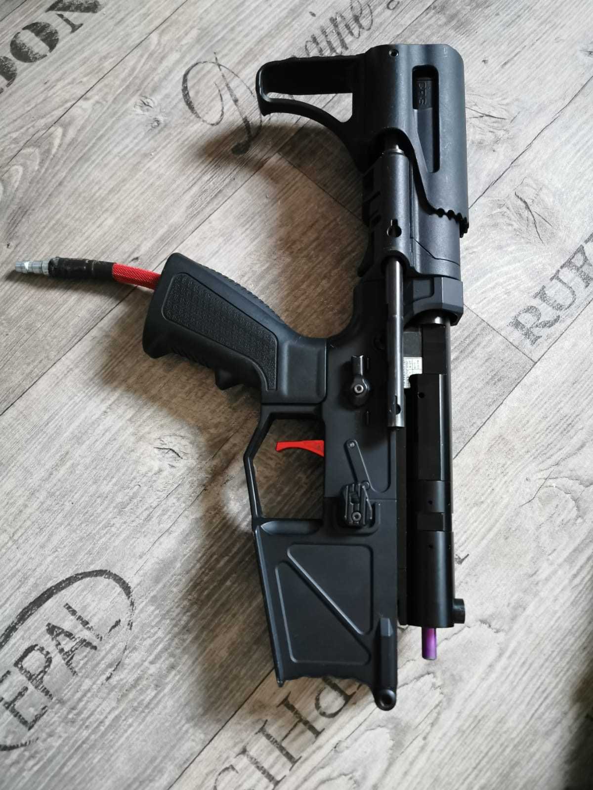 Engine: in deze fusion engine zit een Amped purple nozzle+poppet en een Electro banjo om lucht te besparen
