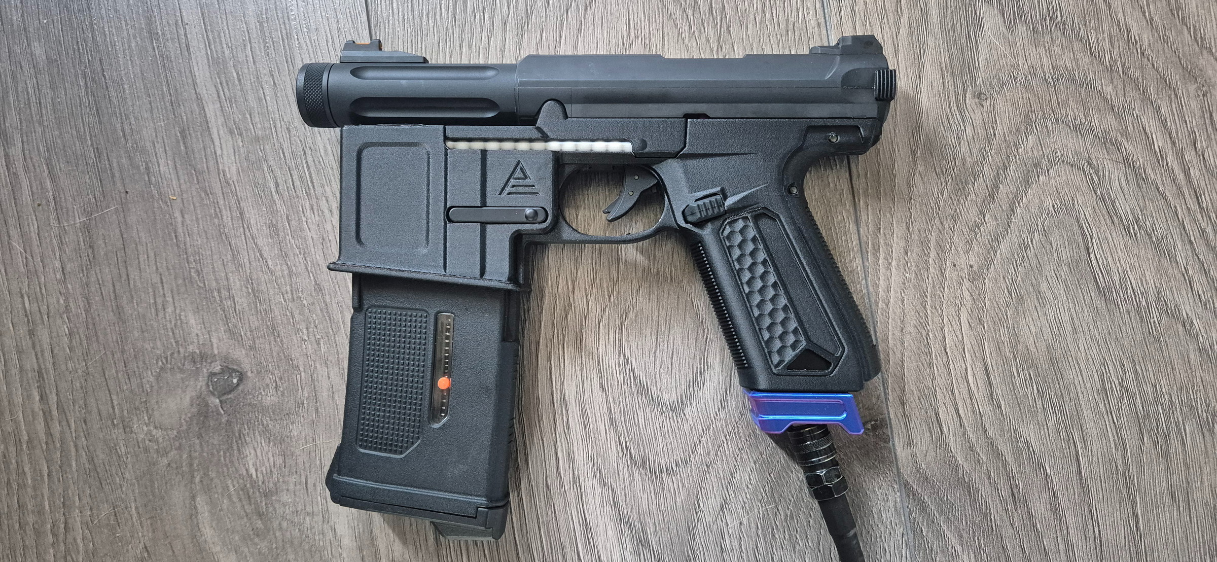 Gas mag is voorzien van een HPA nipple zodat je deze met een tankje kan gebruiken. Geweldig leuk in gebruik en in combinatie met een grote M4 mag blijf je schieten. In te stellen in semi of full auto.