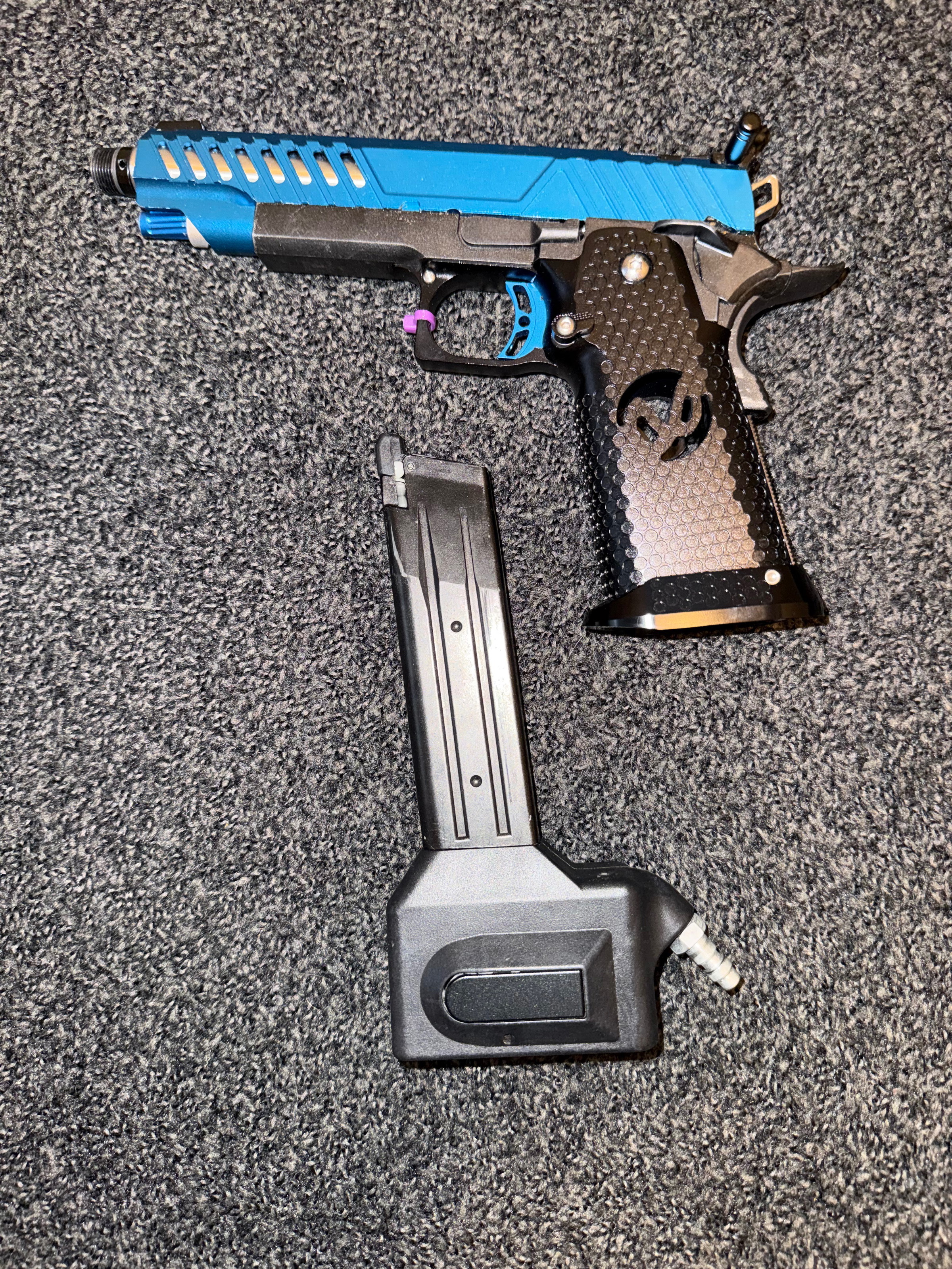 Bij deze bied ik mijn Hi-Capa 5.1 aan. Het is een goedwerkende en betrouwbare capa waar nooit op is bezuinigd. Het is een complete setup waarin alle onderdelen goed op elkaar afgestemd zijn.
