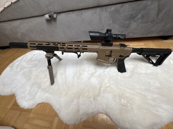 In die Waffe habe ich viel Geld, Liebe und Pflege investiert. Sie wurde nur wenige male gespielt. Interessant wird es für all diejenigen die gerne in den umliegenden Ländern spielen, da ein Titan II Bluetooth verbaut ist der es ermöglicht dort auch Automatik zu spielen. Zurzeit ist die Waffe auf Safe-Semi-Semi (Deutschland).