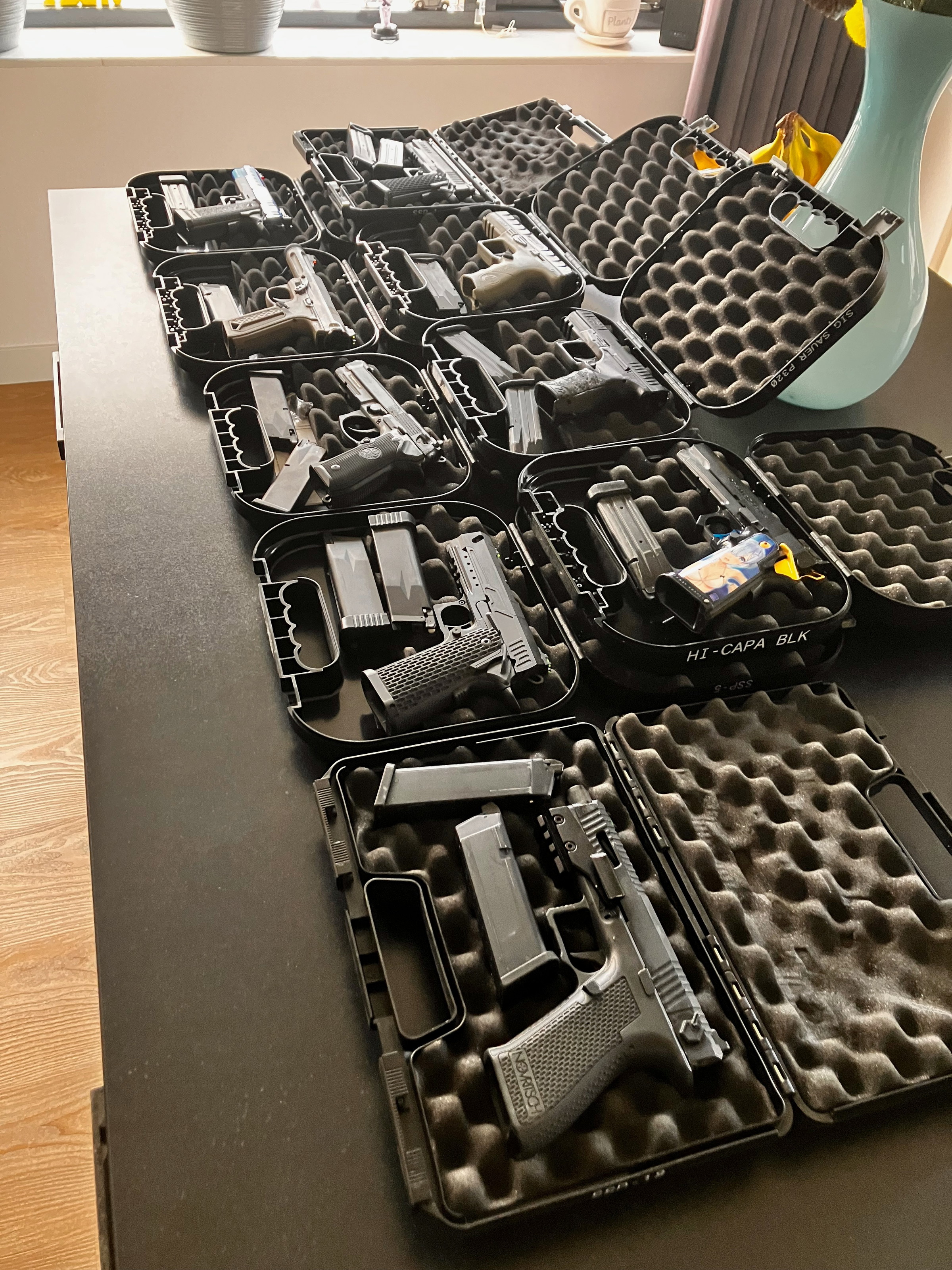 De Rifles hebben of een grote koffer of wapentas.
