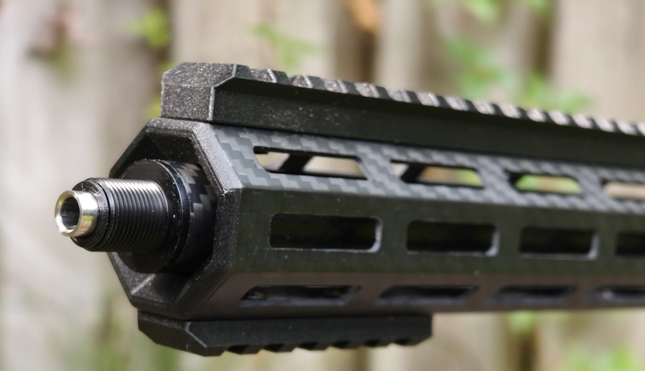 *kan optioneel met 3D print outer barrel in dezelfde lengte als de handguard (meerprijs 25 euro). Dan zit alles aligned en is het een stijf en sterk geheel en extreem lichtgewicht.