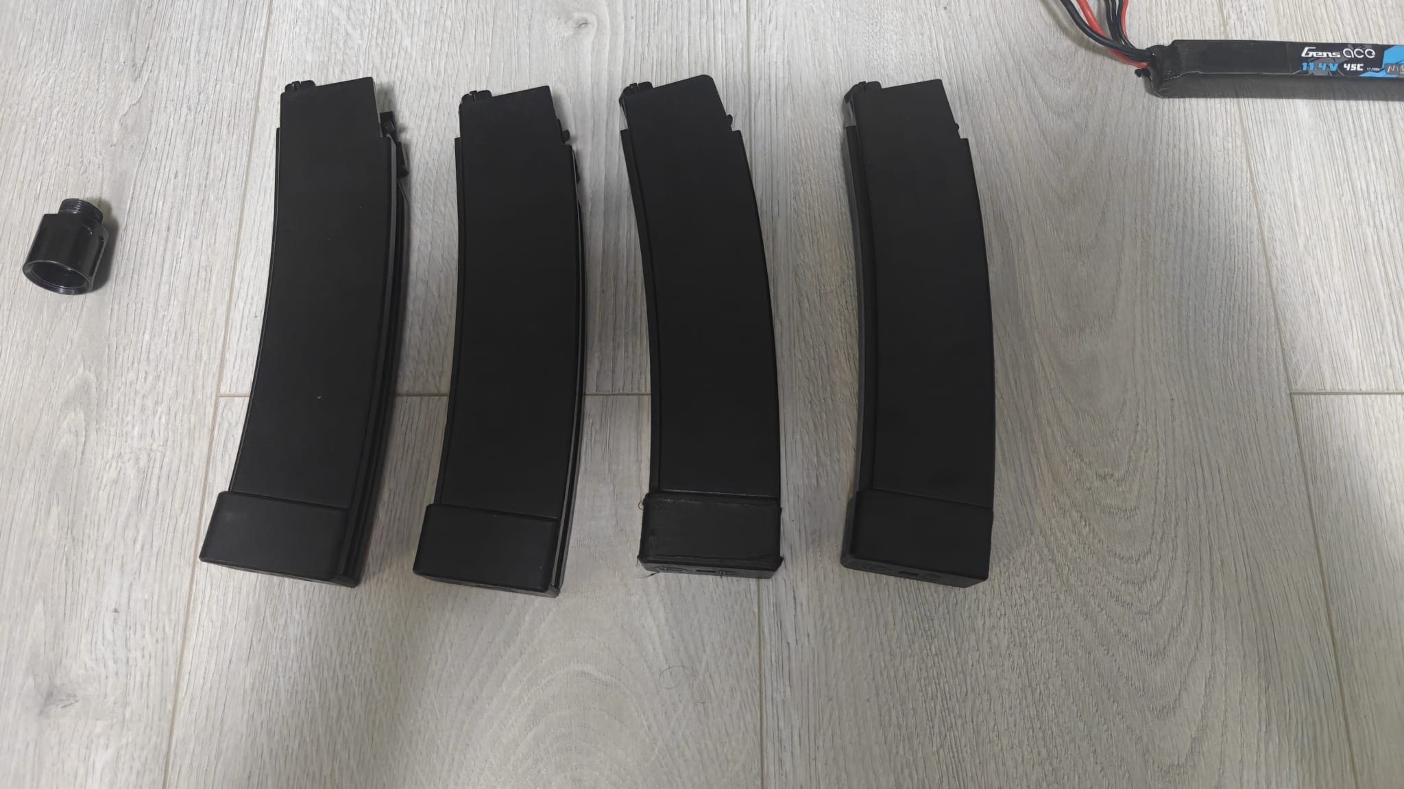 5× midcap magazines and 1× 3S 45C 1500mAh GensAce LiPo battery, fit for high RPS :)