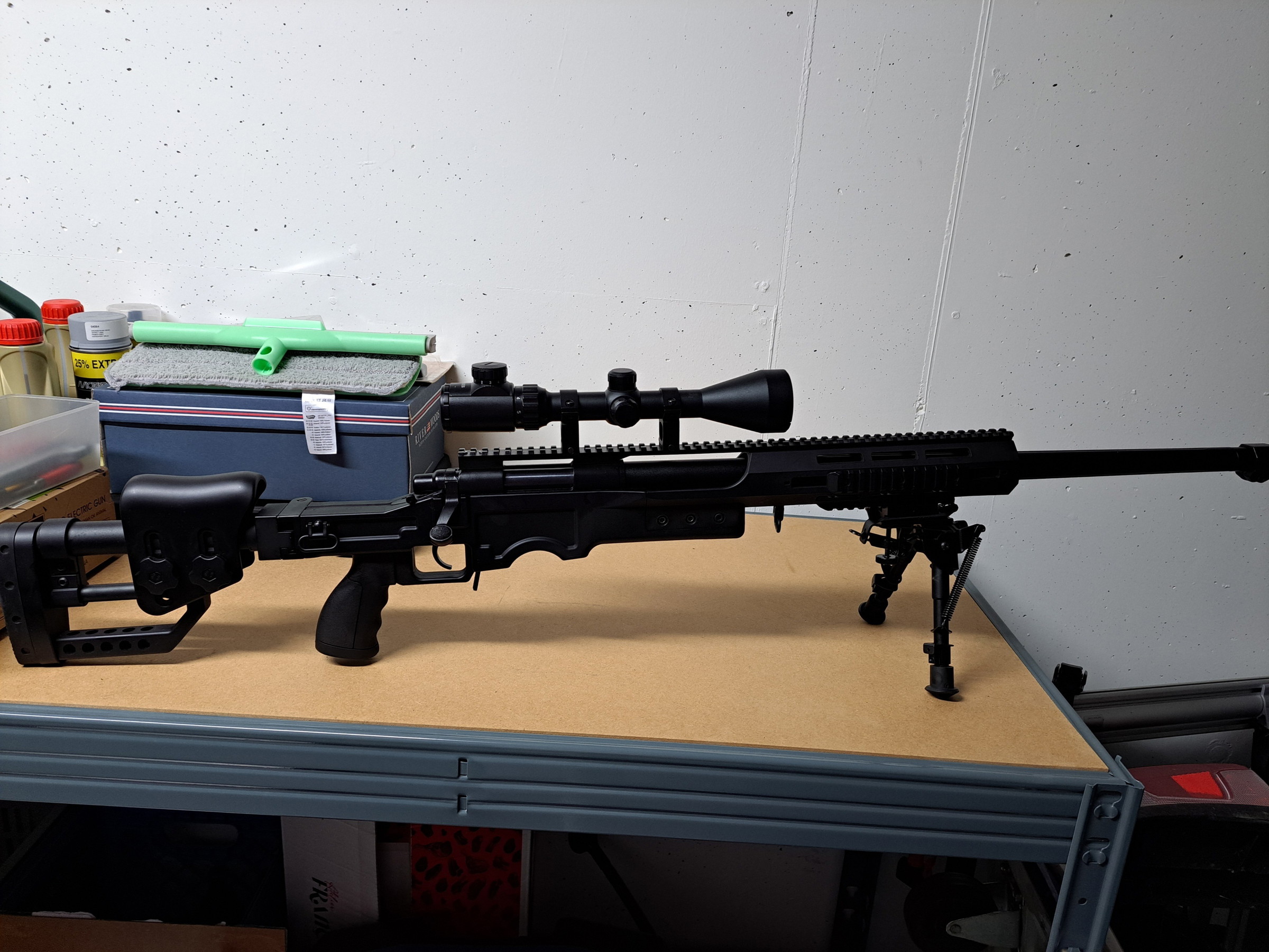 Volledig geüpgraded WELL MB4411 Remington MSR sluipschuttersgeweer. Intern is het geweer een combinatie tussen de TM VSR10 en AWS, waardoor het een uitstekend platform is voor upgrades.