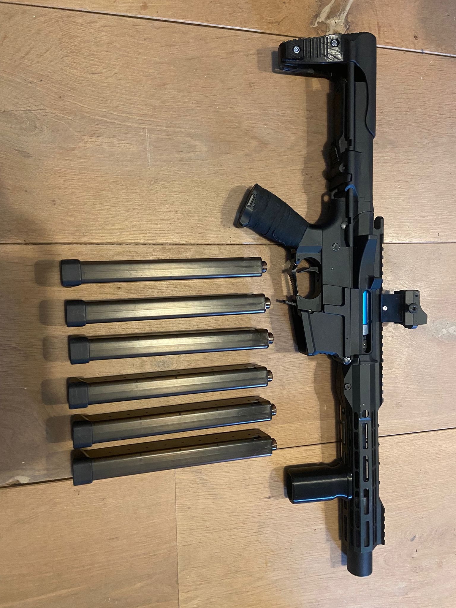 - 3D geprinte outer barrel extension (zodat de silencer half in de handgaurd valt)