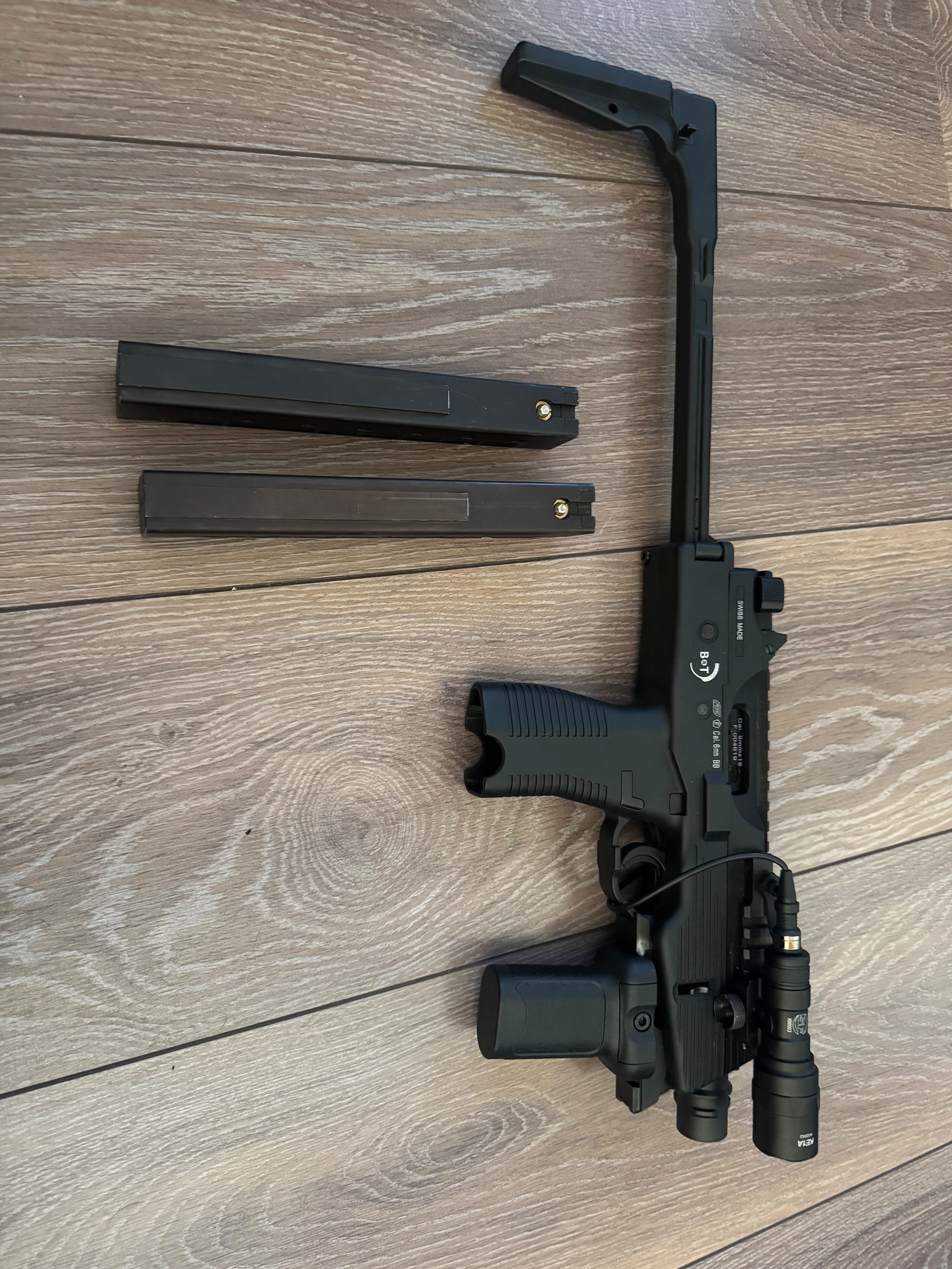 Mooie asg mp9 met 2 mags en een flashlight, heeft een cnc alu nozzle, en andere veren, bucking. Voor info over de andere  replica’s kijk mijn andere advertenties, ik probeer alles in één keer te verkopen voor een leuke en toegankelijke prijs, ook appart tekoop.