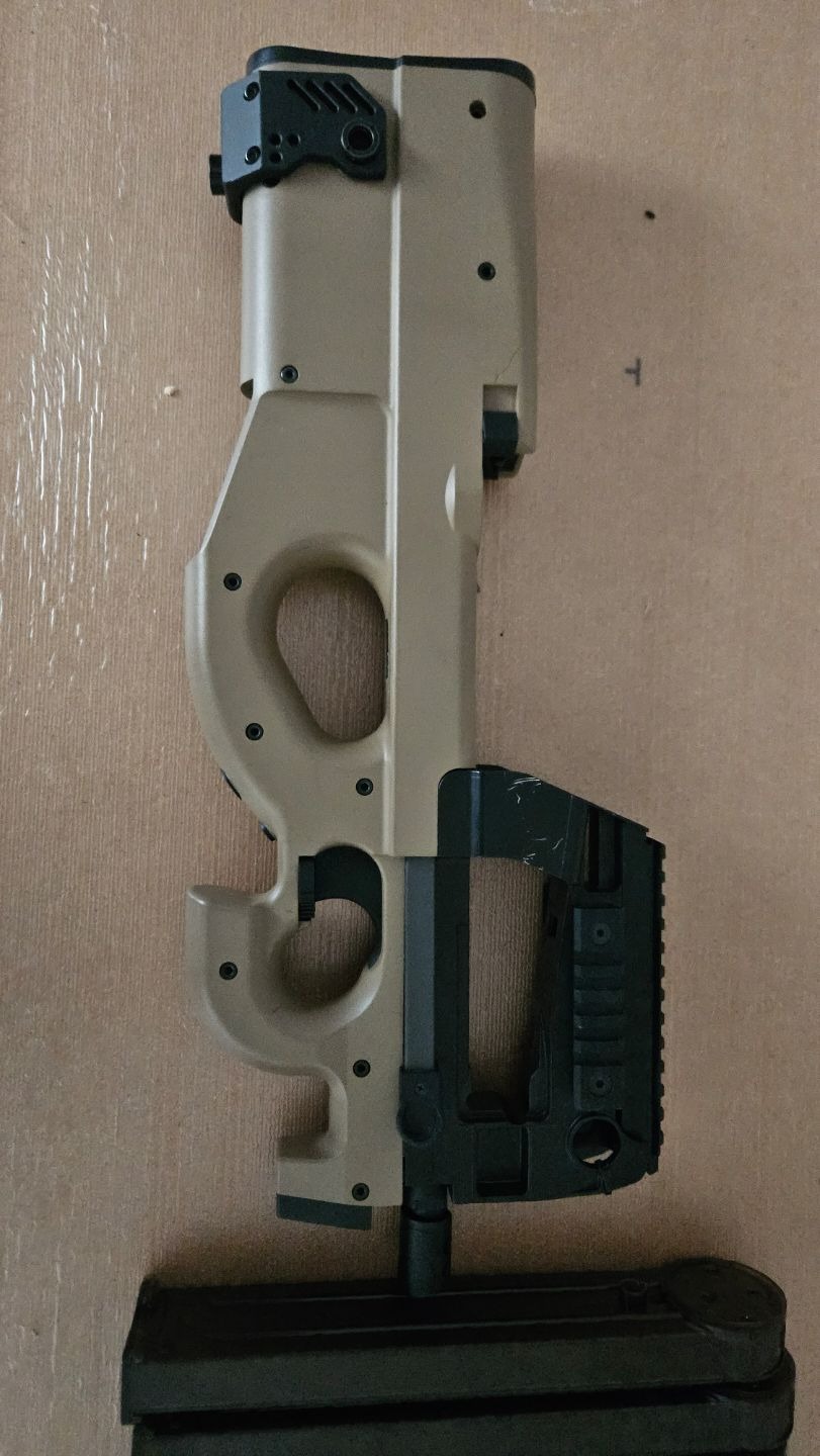 Een wel gebruikte P90 van G&G. Veel plezier mee gehad. Zit een gate mosfet in, buiten de gearbox. Komt met 12 midcaps, waarvan 8 midcaps zo'n 70 bb's houden en 4 midcaps 150 bb's.