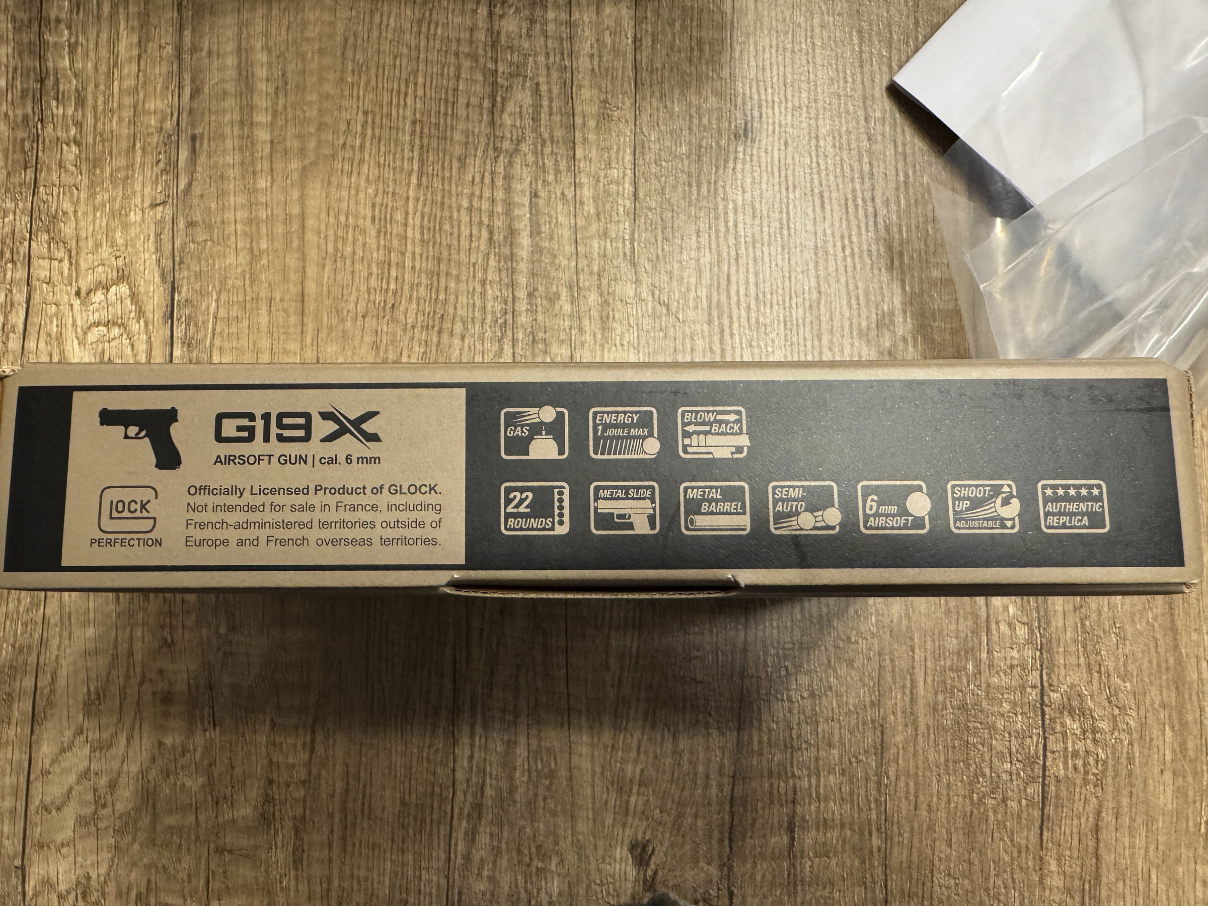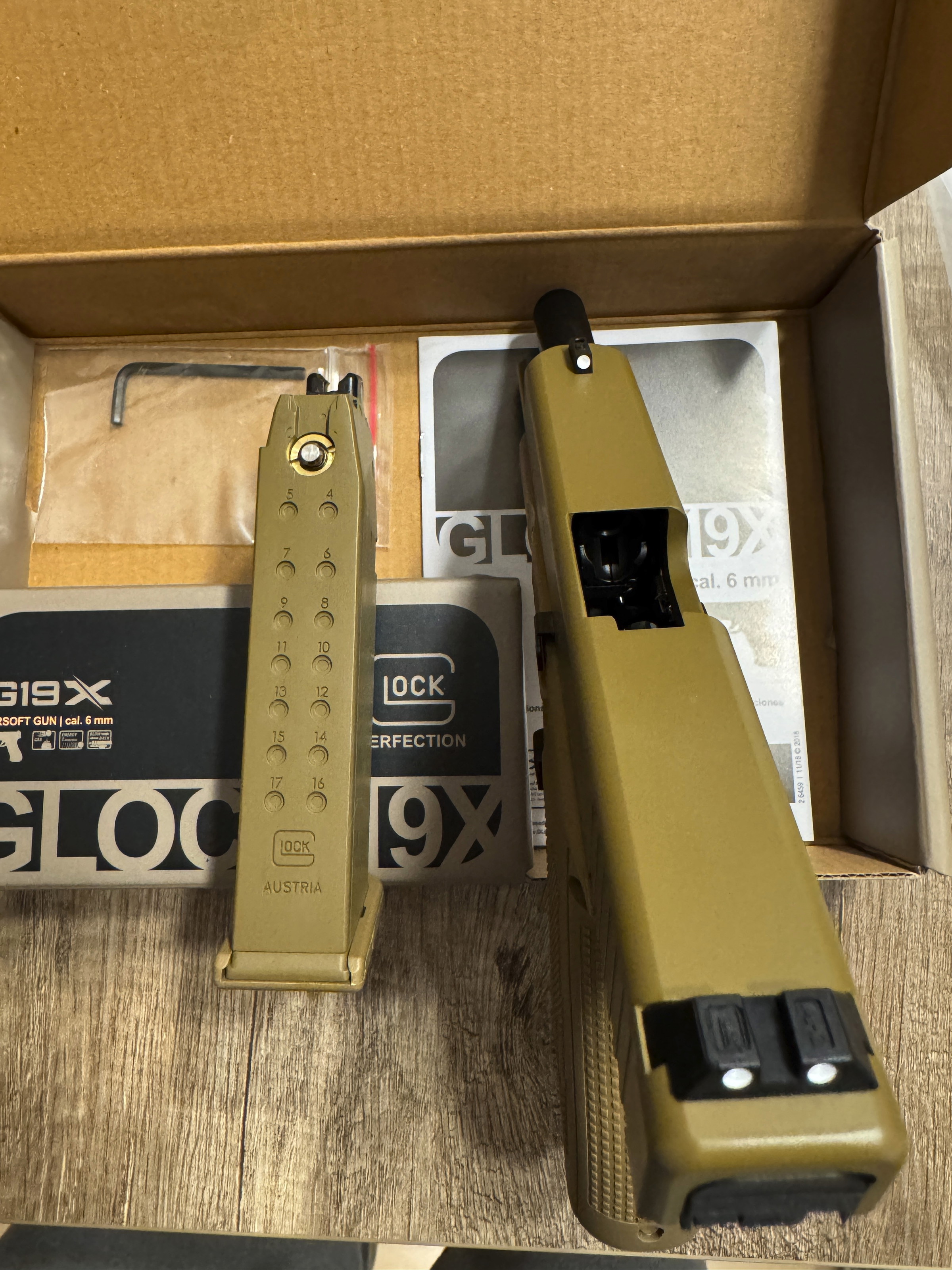 • Glock 19X mit Metallschlitten GBB 6mm BB Coyote Tan