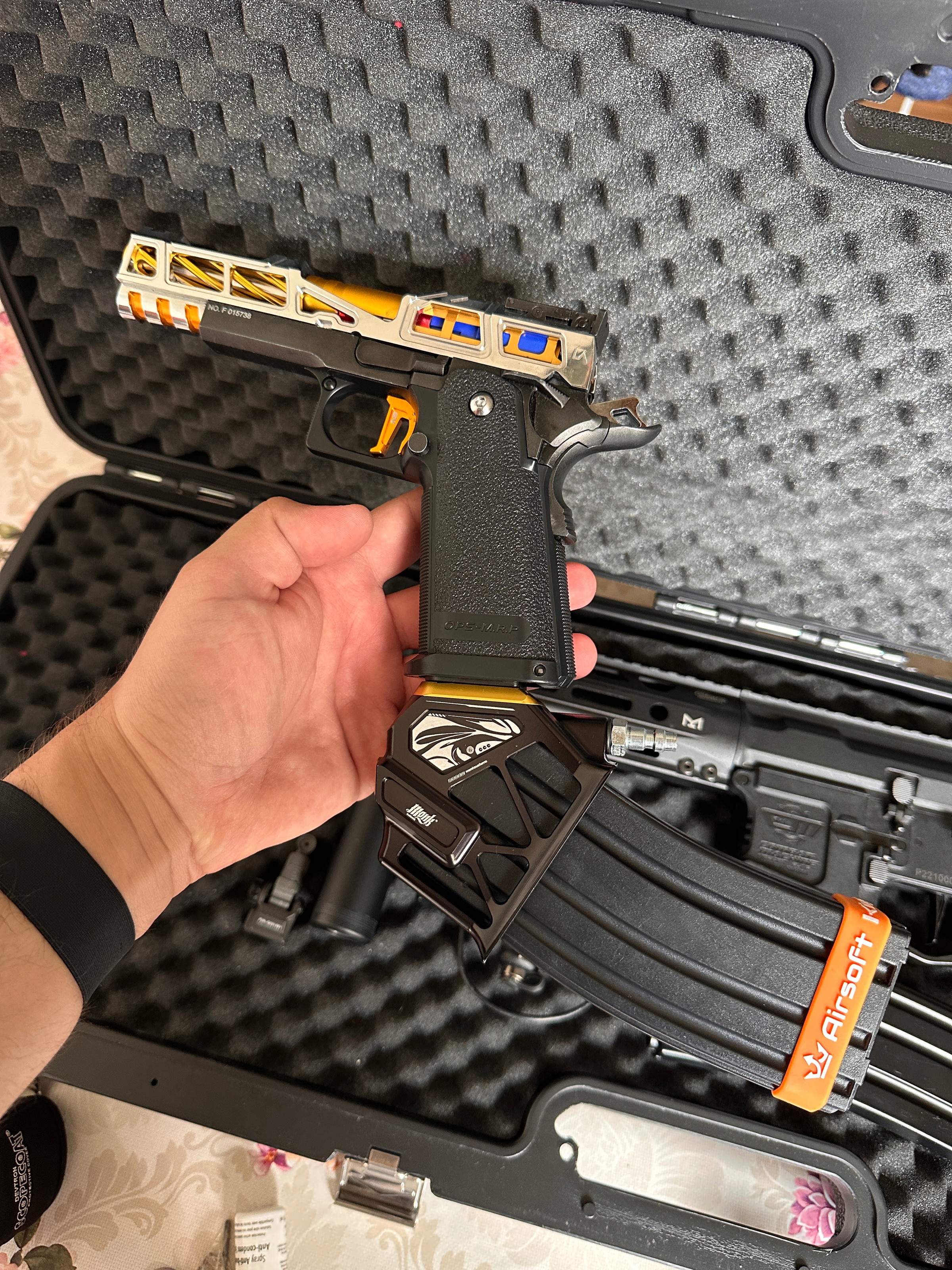 • ⚔️ Custom Build Hi-Capa – strak gebouwd en voorzien van een Monk adapter (klaar om op HPA te spelen zodra je zelf fles/slang/regelaar hebt).