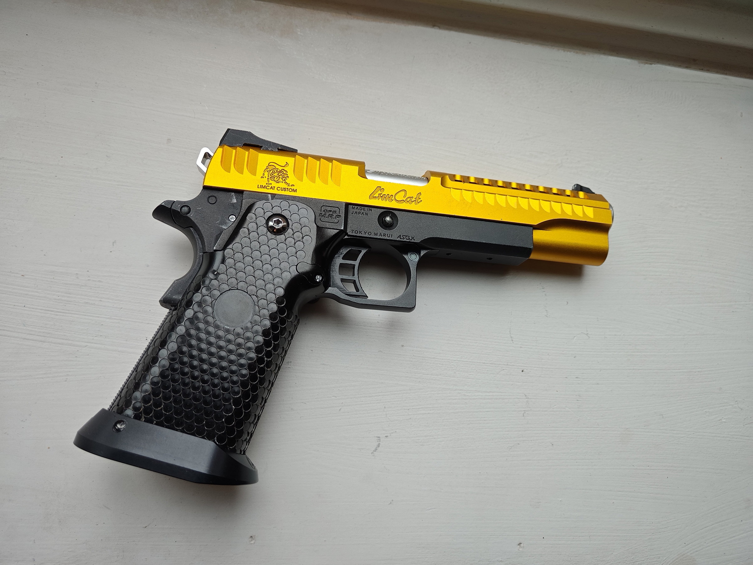 Bij deze verkoop ik mijn custom hicapa build met aluminium grip set en Airsoft Masterpiece Limcat slide.