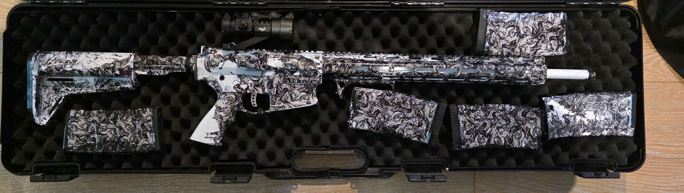 Er zit een maxhopup in met een prometheus inner barrel kythera hpa engine in topstaat alles werkt naar behoren body is full metal en is gehydrodipt met 5 emp mags vraagprijs 500€ of ruilen voor een m4 hpa gun