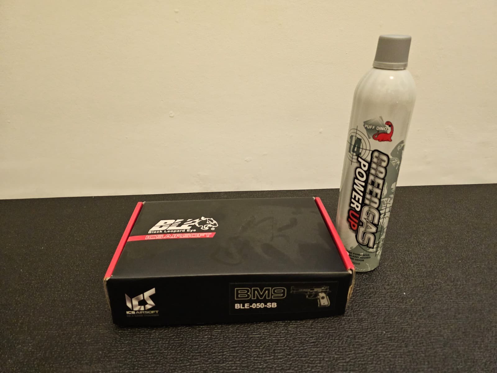 Een ICS M9 Beretta zo goed als nieuw in de bijbehorende doos. Komt met een extra magazijn en een volle fles greengas. De adapter om e.v.t. een silencer op de replica te schroeven zit er uiteraard ook bij.