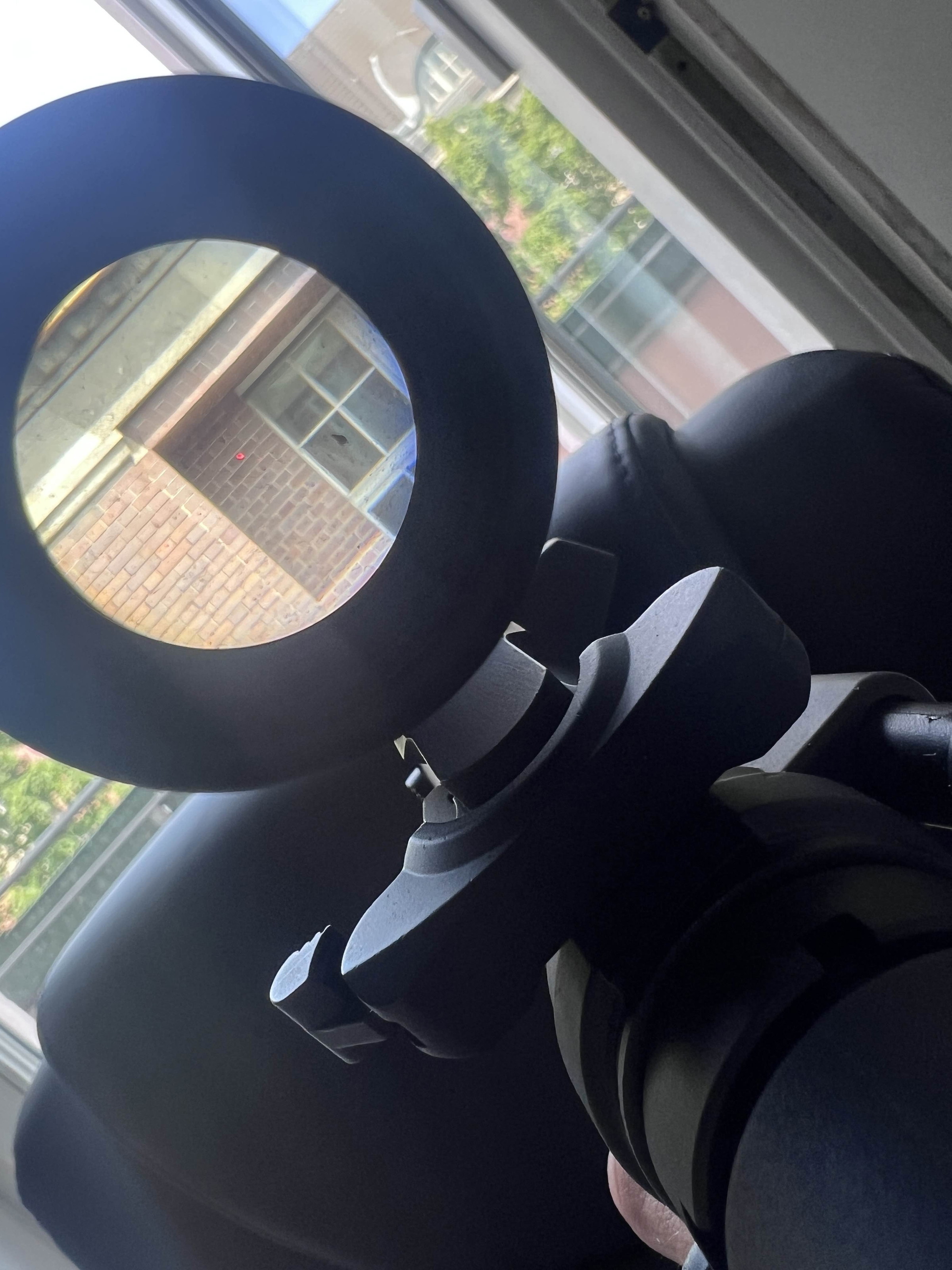 • Rotpunktvisier von Feyachi mit Schutz (Hinweis: beim Hauptpunkt ist ein kleiner zusätzlicher Punkt sichtbar)