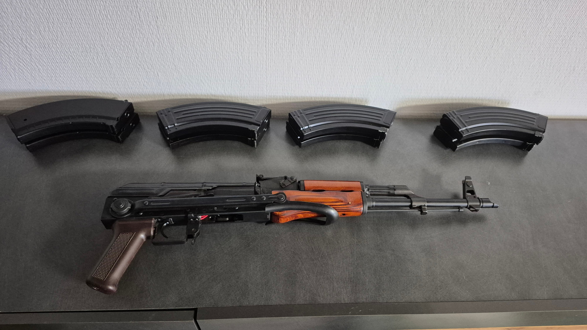 Is een paar keer mee geskirmed, zitten 8 mags bij waarvan 2 polymer. replica werkt naar behoren. kleine gebruikssporen.