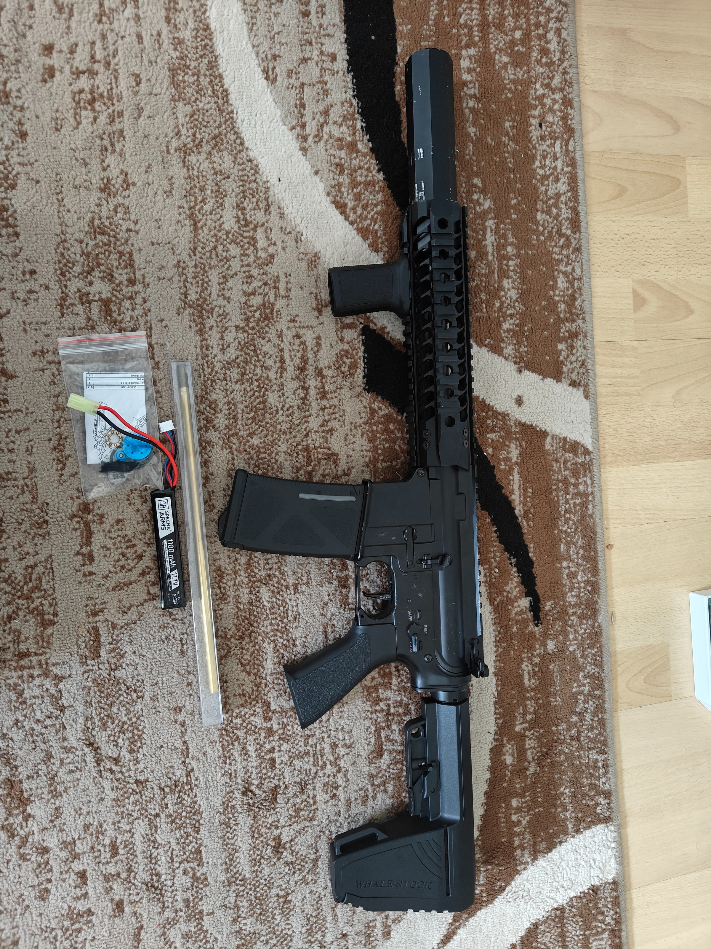 A solid DMR M4 replica with upgraded barrel and some internal components.
