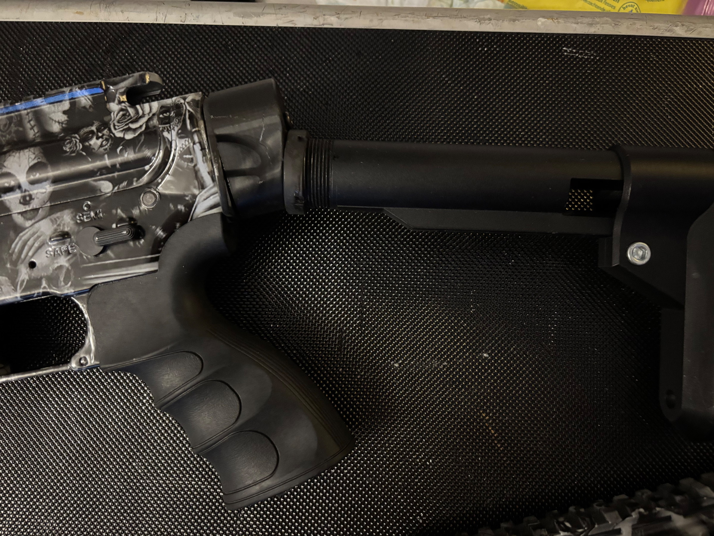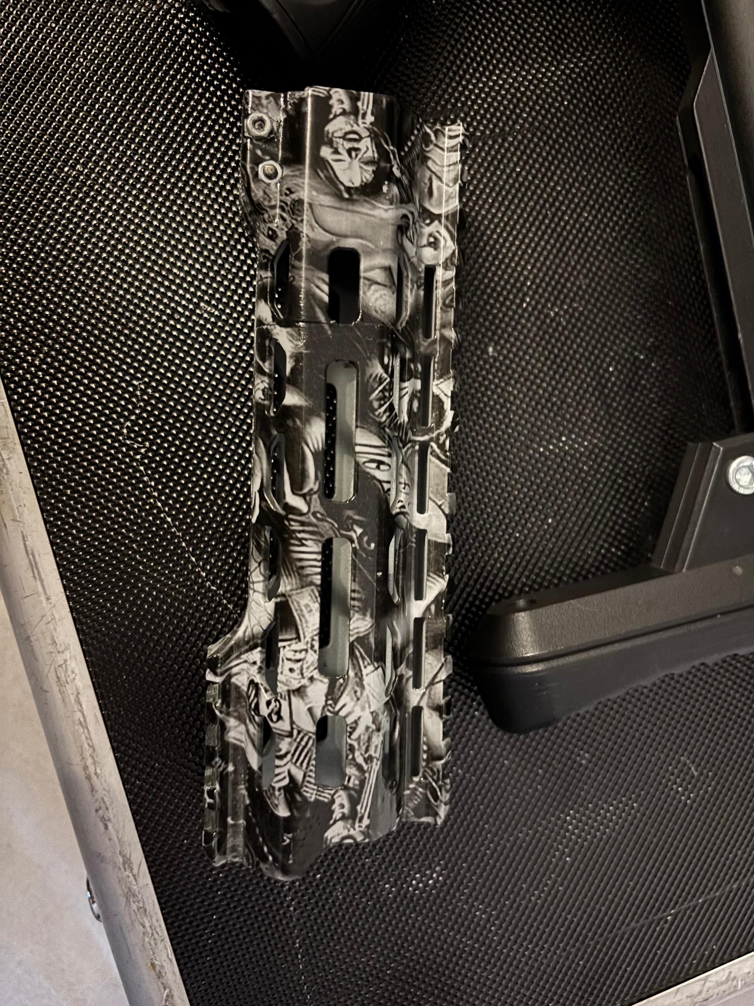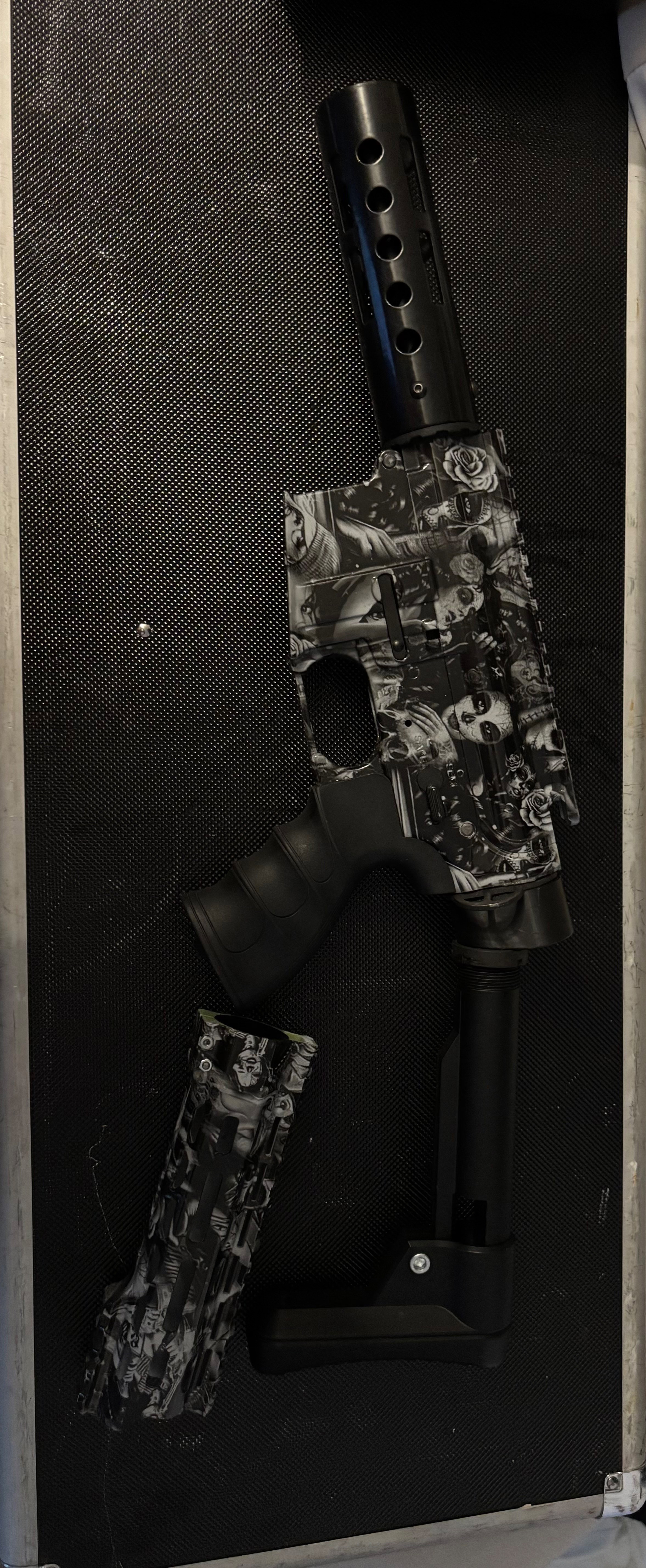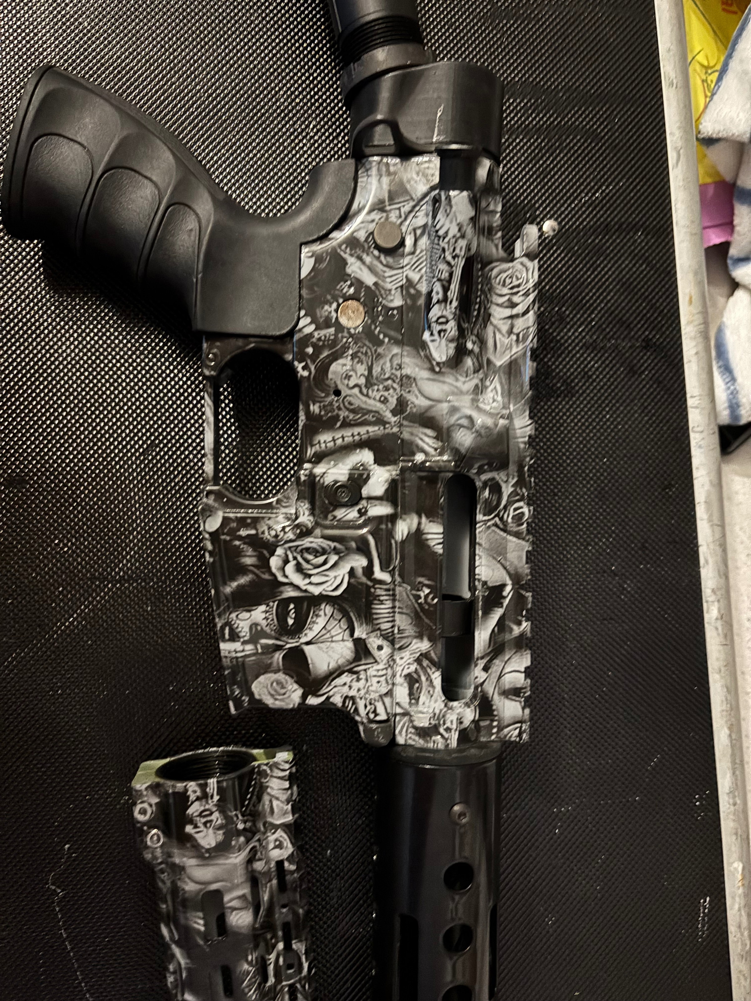 De body is gehydrodipt op een zeer mooi patroon speel je toch liever zonder dropstock kan je die eraf halen voor een short build
