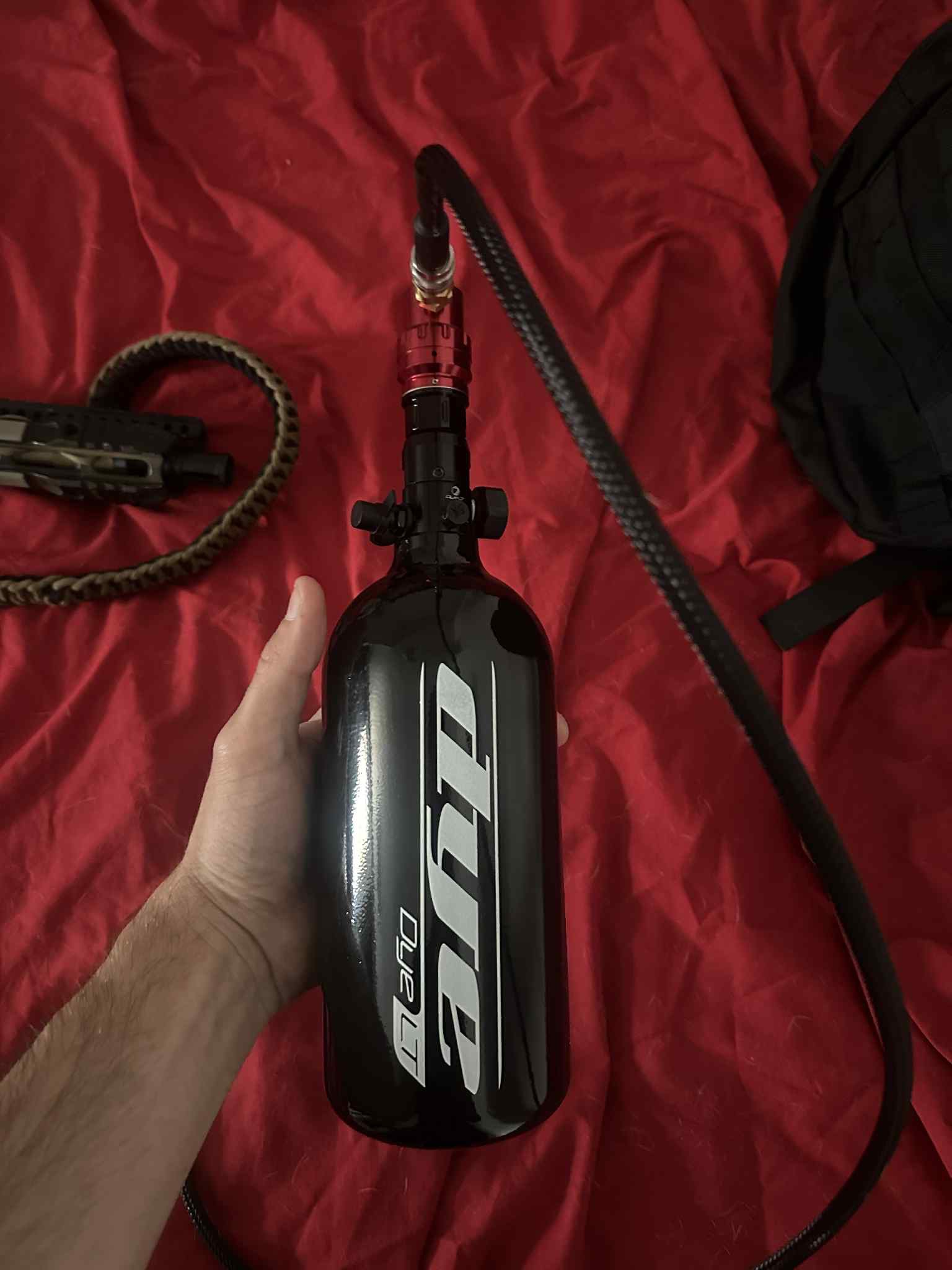 Er komt ook een volledige set van fles+regulator + line+rugzakje