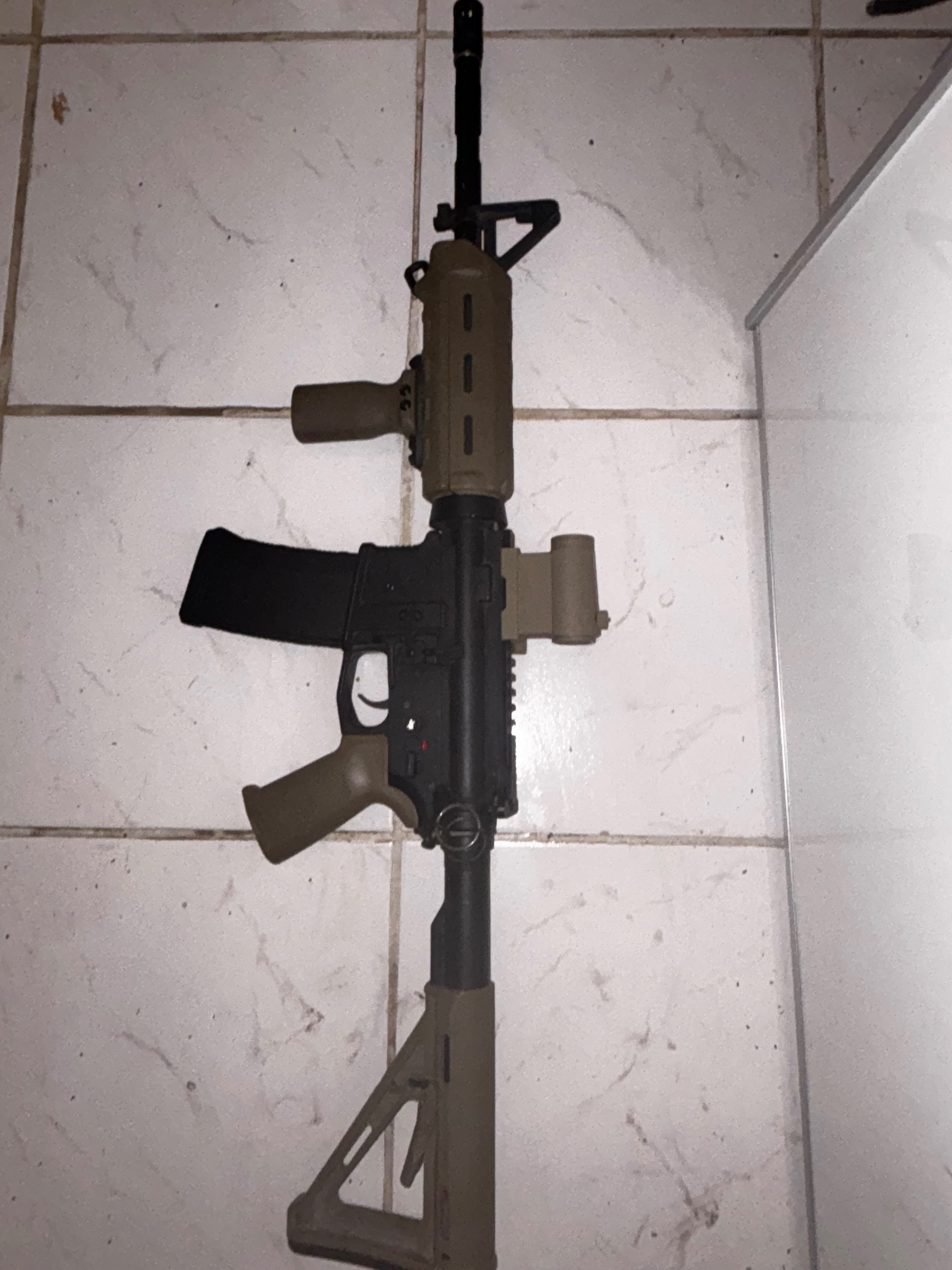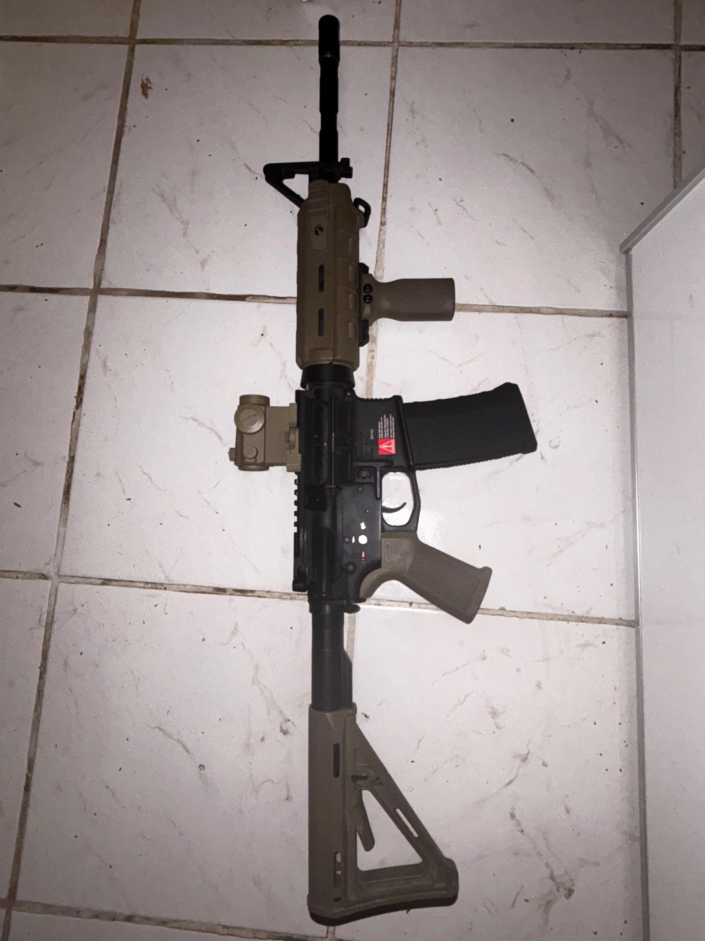 Bij deze doe ik mijn Airsoft weg wegens stopzetting hobby is een magpul m4 is net op onderhoud geweest alles in orde wat je ervoor krijgt is natuurlijk de replica een nieuwe sight met het kleurtje rood/ groen puntje een extra magazijn er zit een nieuw magazijn in een zo goed als nieuwe zak BB’S bio er zijn er mss 75 uit ofzo denk ik bij interesse stuur maar een berichtje liefst zo dicht mogelijk bij Sint Niklaas